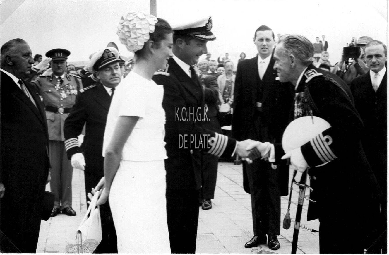 Formaat : 11 x 16,5 cm. - Prins Albert wordt begroet door Kapitein-ter-zee Jules Delforge. We herkennen van rechts naar links : de gouverneur van de Provincie West-Vlaanderen Pierre van Outryve d'Ydewalle, burgemeester Jan Piers, de stafchef van de Zeemacht, admiraal Léon Lurquin en de minister van defensie P.W. Segers. Hier nabij het Weststaketsel. - Map 014 B-03a