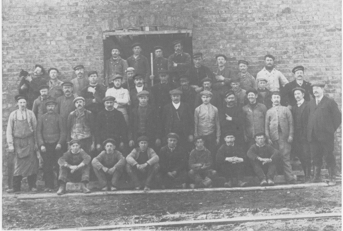 Het personeel van de houthandel Snauwaert. Op de tweede rij onderaan, uiterst rechts de heer Leopold Acke met naast hem zijn twee zonen René en Georges