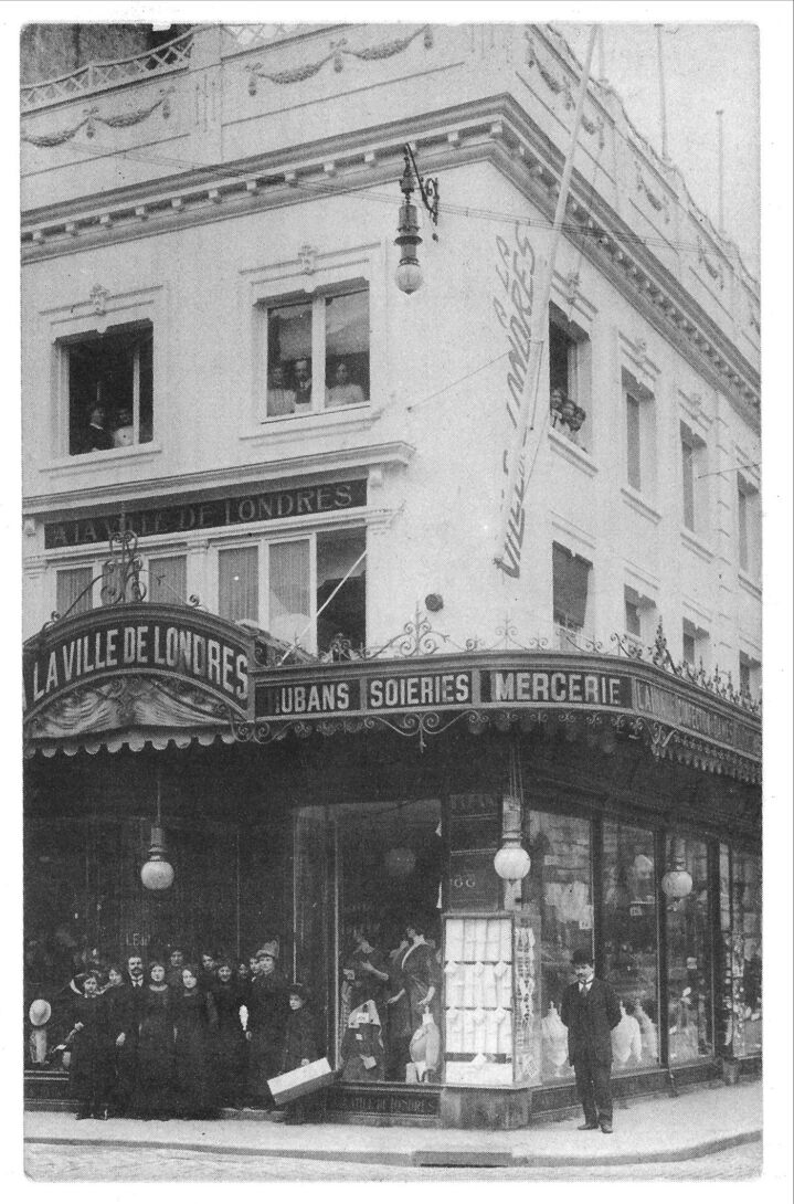 De handelszaak "A la Ville de Londres" op de hoek Kapelle- en Ooststraat.