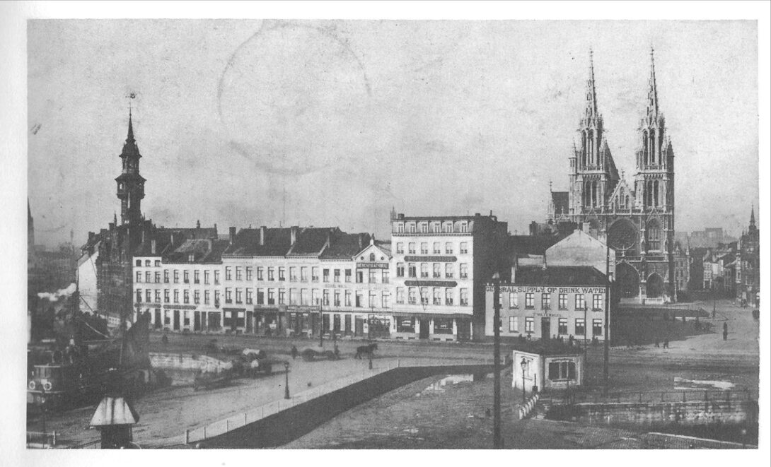 De Keizerskaai, met rechts het Waterhuis (general supply of drinkwater), en links het Zeevaartcommissariaat, of "De Pilotage" (met torentje). Op de achtergrond de Sint Petrus- en Pauluskerk.