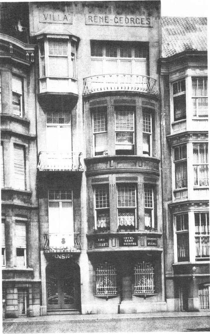 Het Hotel Rene-Georges, gevestigd in de Koninginnelaan nr. 48, toen uitgebaat door mevrouw weduwe C. Dombrecht-Nachtegaele. Thans een modern appartementsgebouw