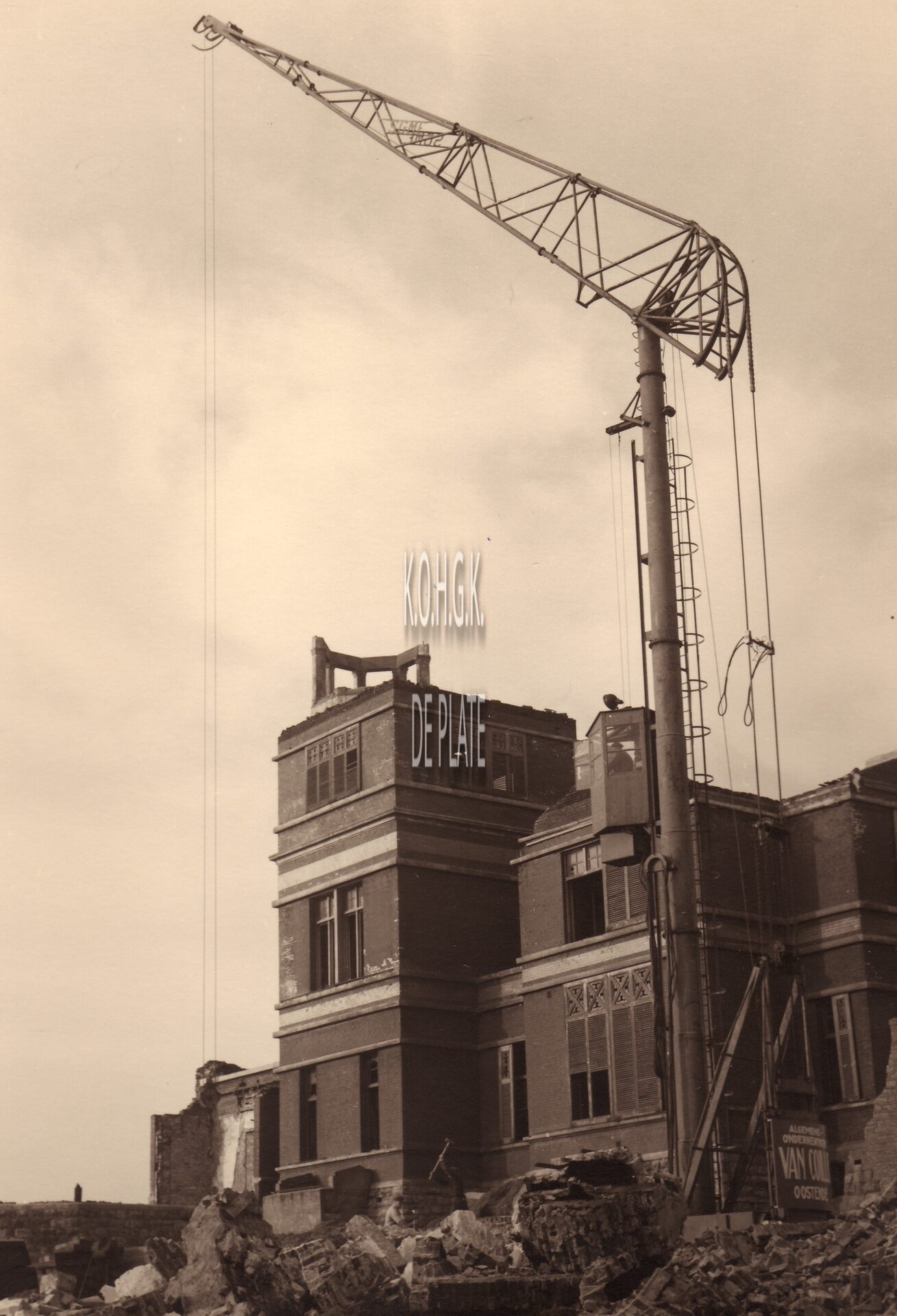 Formaat : 18 x 13 cm. - Afbreken van de puinen van de koninklijke villa na de Tweede Wereldoorlog door de bouwonderneming Wwe J. Van Coillie.