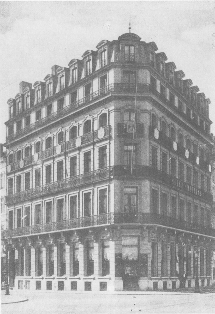 Het majestueus "Hotel Imperial" gelegen op de hoek van de Leopoldlaan (links) en de Van Iseghemlaan (rechts), toen uitgebaat door de heer J. Friedrich. In de dertiger jaren had dit hotel zijn eigen roulettespeelzaal, de "Club l'Imperial" genaamd