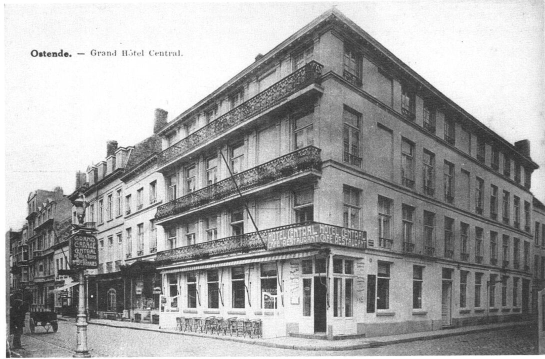 Het Grand Hotel Central, gelegen op de hoek van de Louisastraat (links) met de Brabantstraat (rechts). Het gebouw werd in 1977 afgebroken om plaats te maken voor een modern appartementsgebouw.