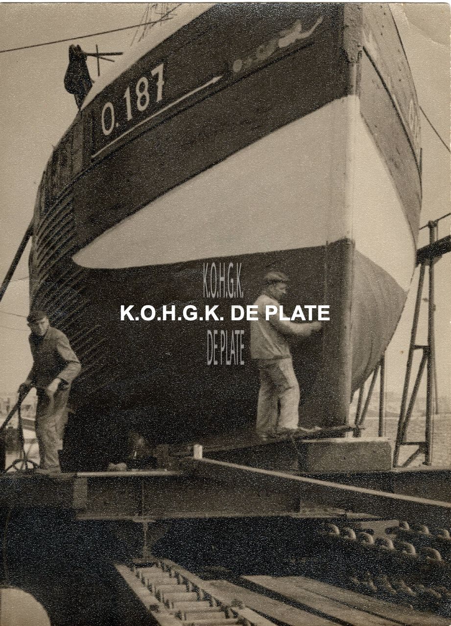 Foto : De O.187 "Jules Denye" op de slipway te Oostende