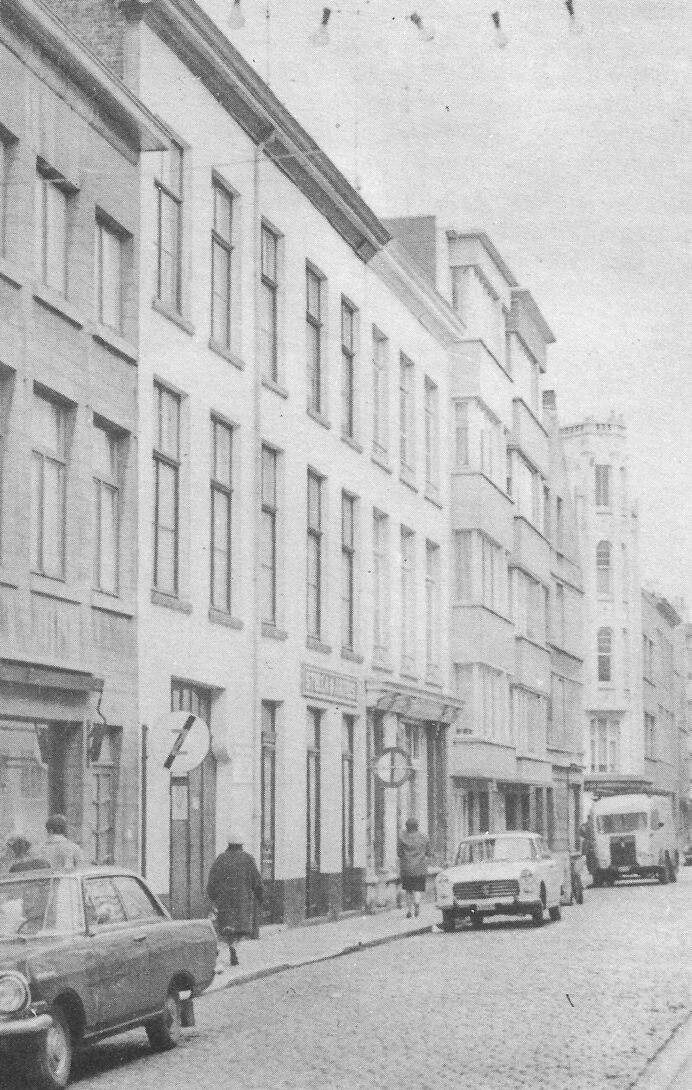 Gedeelte van de Ooststraat tussen de Kerk- en de Kaaistraat. Het tweede gebouw van links is het taxibedrijf van J. Verburgh. Twee huizen verder werd in 1959 een banketbakkerij van de SEO geopend.