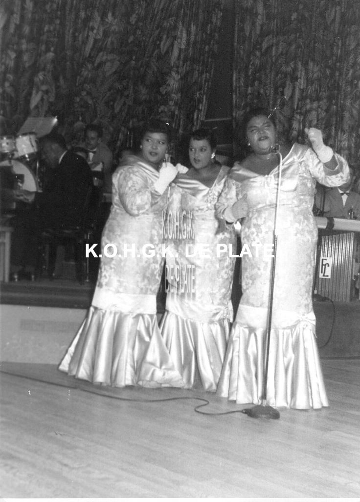 Formaat : 18 x 13 cm. - Amerikaans vocaal trio. Drie zusters, Anne, Mattie en Virgina Peters. Traden op in de nightclub "La Champagne" met het kursaalorkest Franz Lebrun