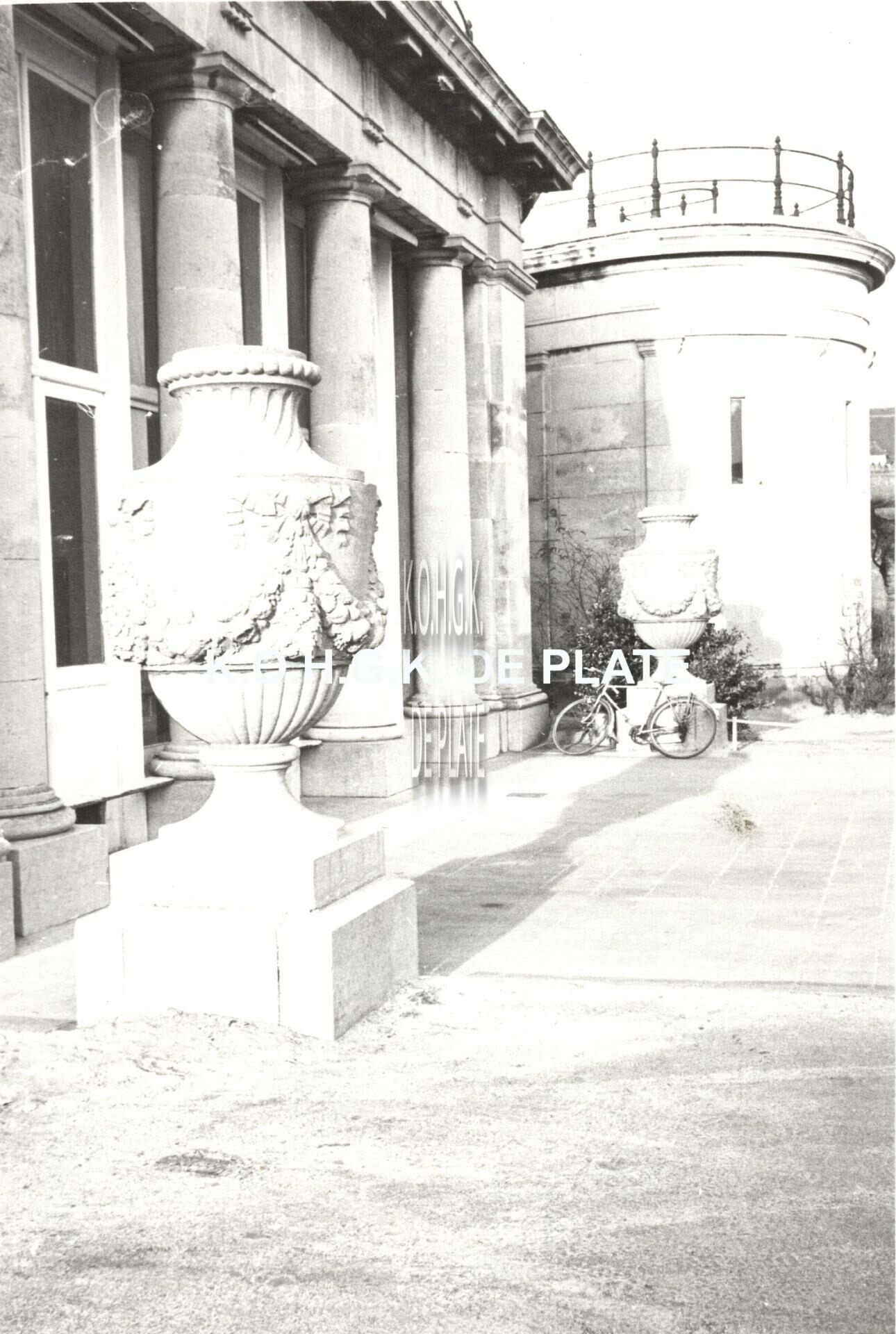 Formaat : 12 x 8 cm. - 2 monumentale vazen aan de achterkant van de Koninklijke Gaanderijen nabij de drie bogenbrug "de Drie Gapers"