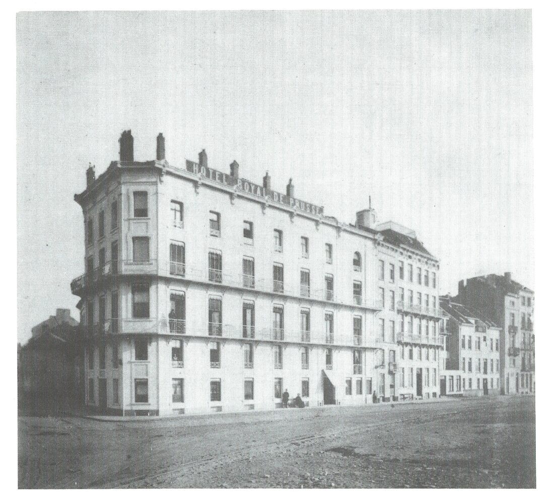 Het "Hotel Royal de Prusse" op de hoek Van Iseghemlaan en Kapucijnenstraat. Zie ook "Nouvel Hotel" en "Boulevard et Nouvel Hotel", de latere namen.