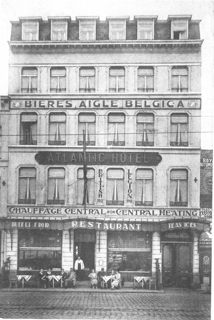 Het Atlantic Hotel, gelegen aan de Vindictivelaan nr. 34 (naast het bekend café In 't Waterhuis), toen uitgebaat door de heer Jack Reynolds. "Op de gevel : Bières Aigle Belgica. Chauffage Central - Central Heating. Op de luifel : Buffet Froid - Restaurant - Teas - Ices"