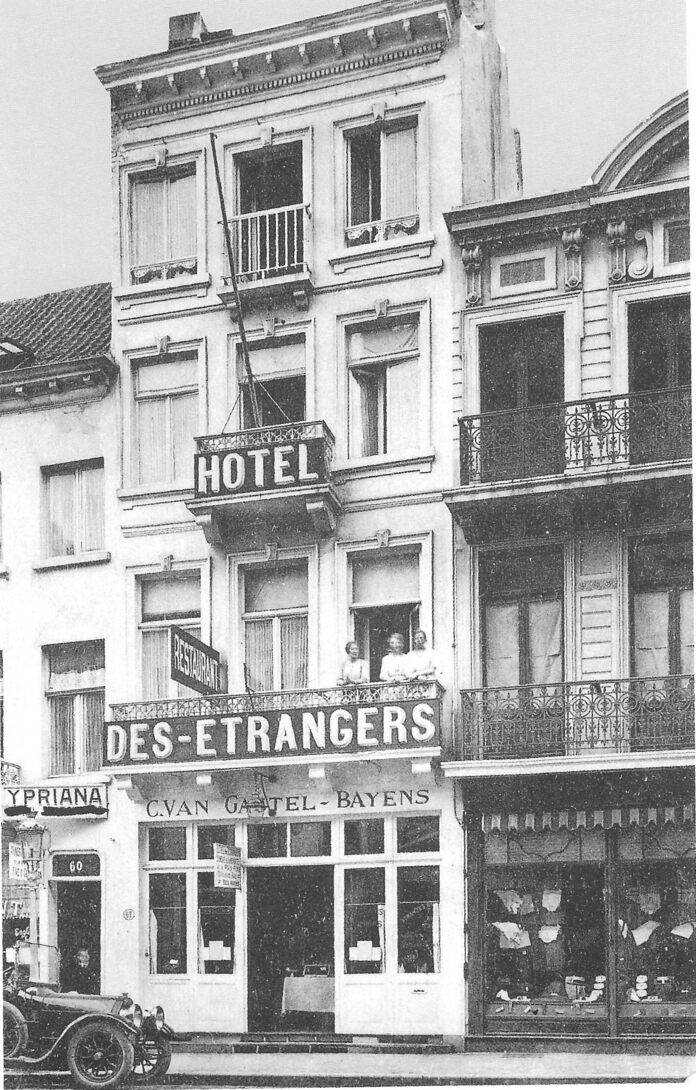 Het "Hôtel Des Etrangers", Vlaanderenstraat 62. Uitgebaat door het echtpaar C. Van Gastel-Bayens