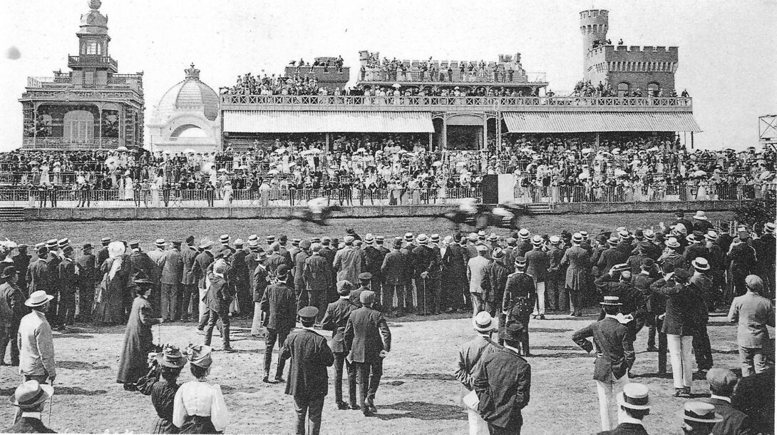 Omschrijving Zicht van de drukte op de Wellington renbaan tijdens een koersdag Trefwoorden WELLINGTONRENBAAN SPORT ; PAARDENSPORT OOSTENDE ; BELLE EPOQUE Plaatskenmerk B467 Deelbeschrijving uit boek of document Oud Oostende in beeld 3 1987 Auteurs Van Caillie André Pagina 81 Print