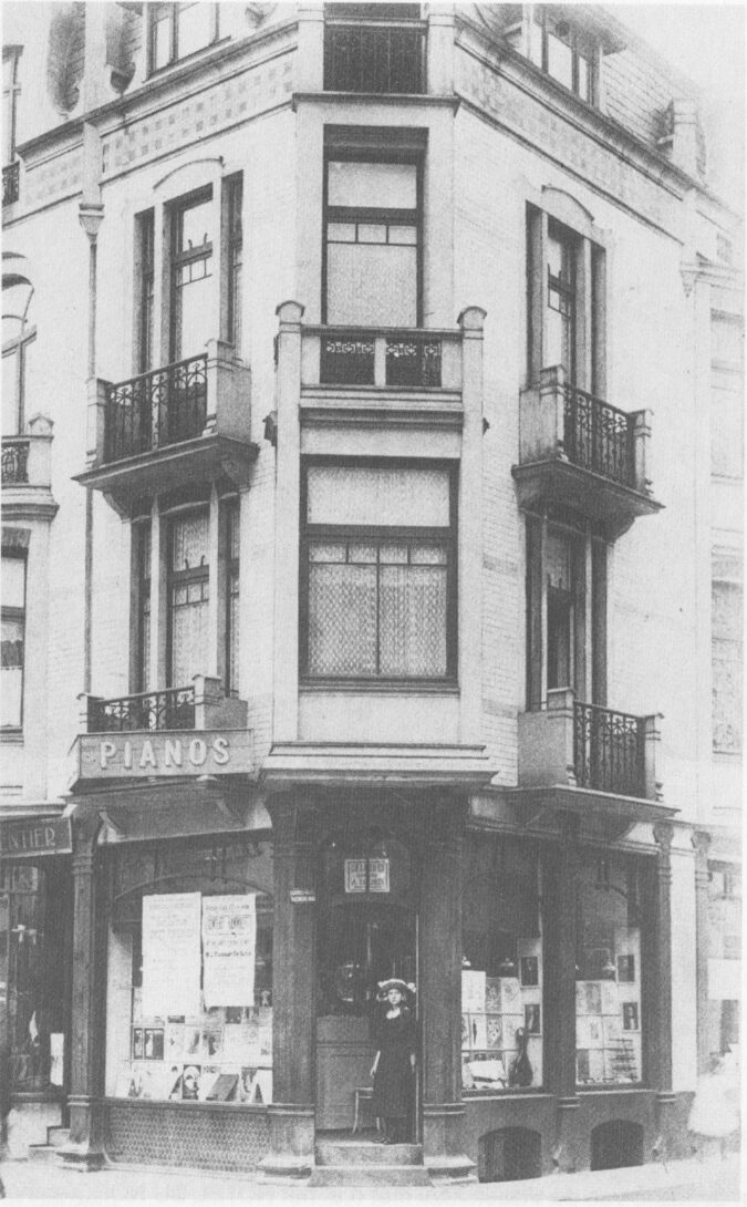 De handelszaak in muziekinstrumenten "Maison Beenckens", gevestigd in de Weststraat 7, op de hoek van de Christinastraat.