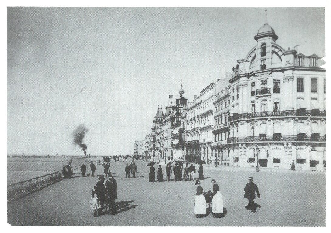 De Zeedijk vanaf de Kursaal-Oosthelling richting havengeul. Op de hoek het "Hotel Royal Belge"