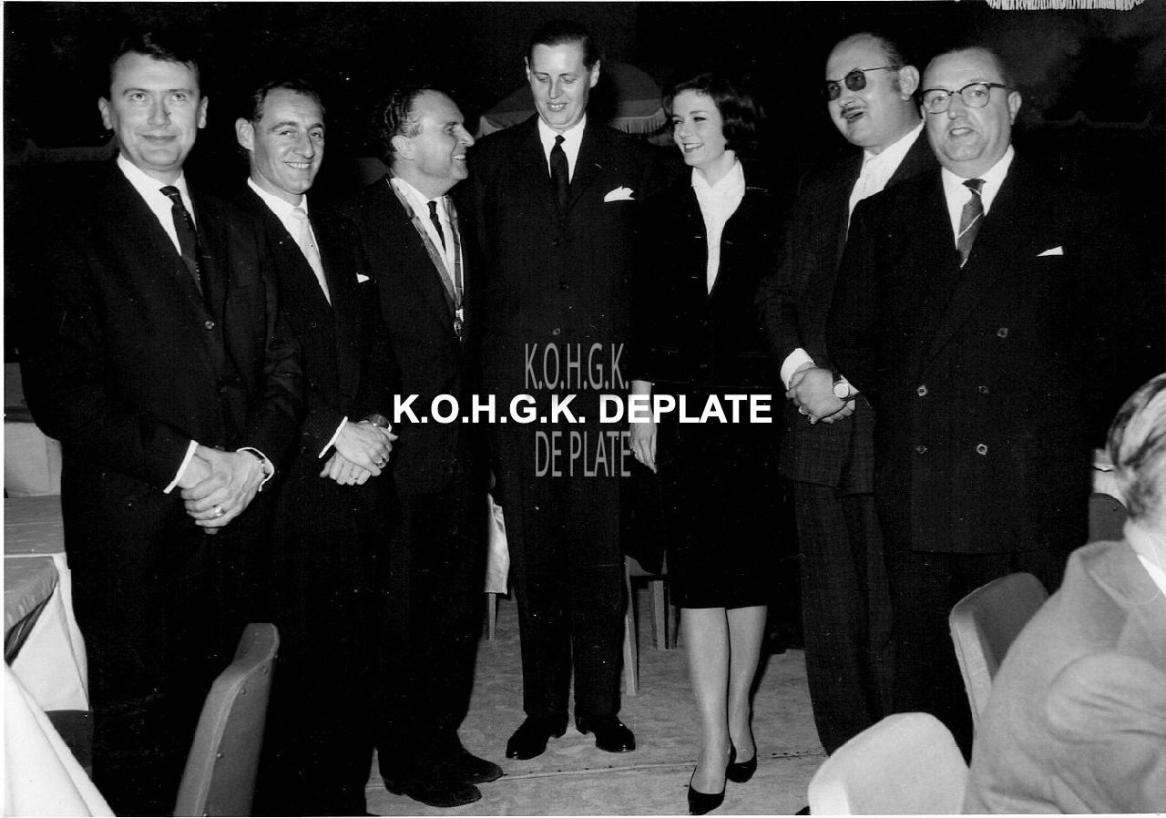 Formaat : 13 x 18 cm. - Luc Varenne, de bekende sportjournalist voor de franstalige radio, kreeg de ere-medaille van de Stad Oostende voor de promotie van onze stad. We zien hem hier op de champagne avond "Une Soirée chez Ruinart". Van links naar rechts : weerman Armand Pien, televisiejournalist Omer Grawet, Luc Varenne, burgemeester Jan Piers, (Nicole Grumiaux omroepster RTB onder voorbehoud), directeur van de Kursaal Roger De Ramée en schepen John Lauwereins.