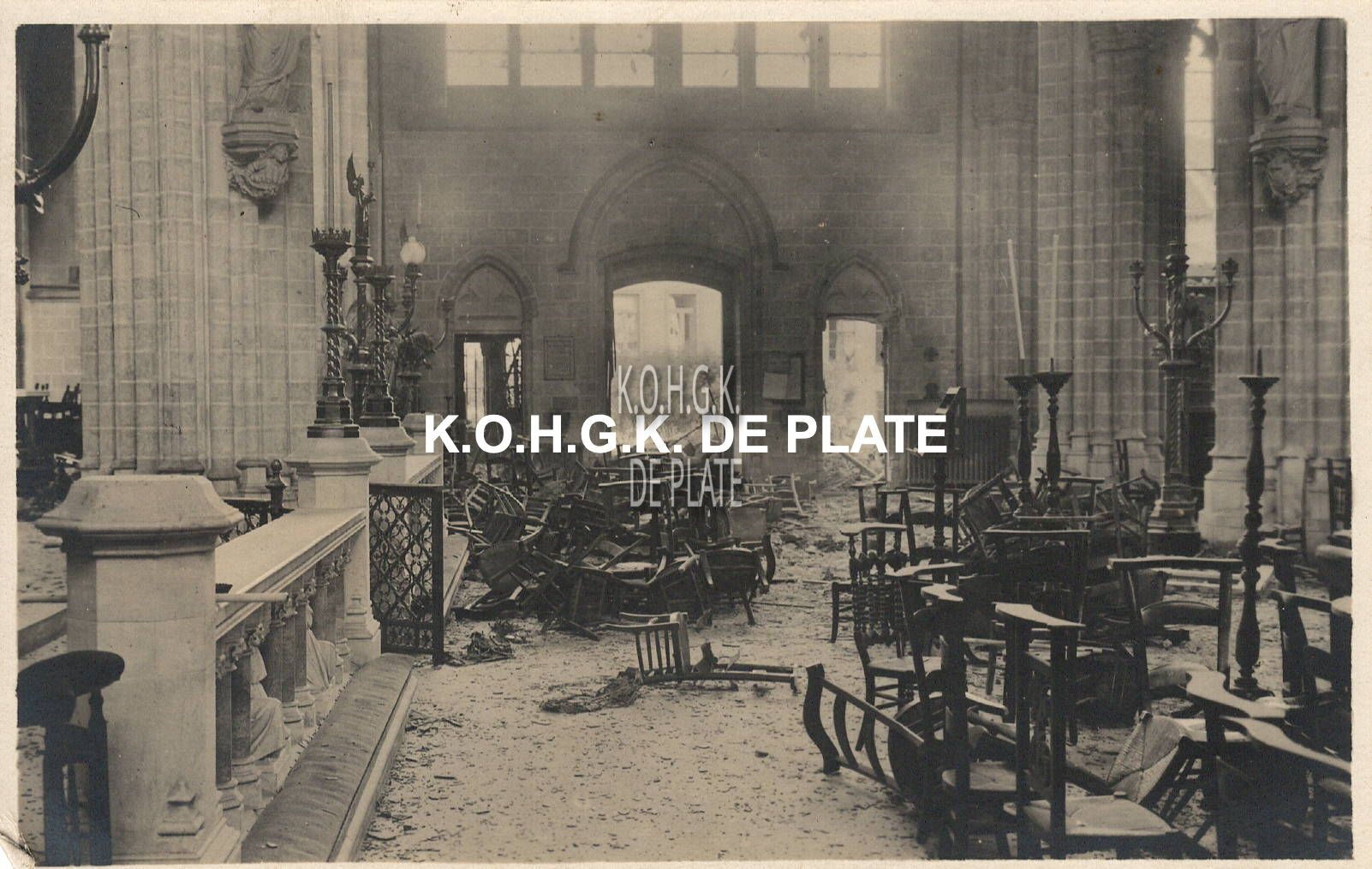 Omschrijving Formaat : 8,5 x 13,5 cm Trefwoorden EERSTE WERELDOORLOG IN FOTO'S SINT-PETRUS- EN -PAULUSKERK ; INTERIEURS KERKELIJKE GEBOUWEN Plaatskenmerk FOTOARCHIEF 202 01-07 ARCHIEFDOOS WERELDOORLOGEN EN BELEGERINGEN Inventarisnummers 1999/0668 Collectie Fotoarchief De Plate Herkomst VERBURGH (BRUSSEL) Print