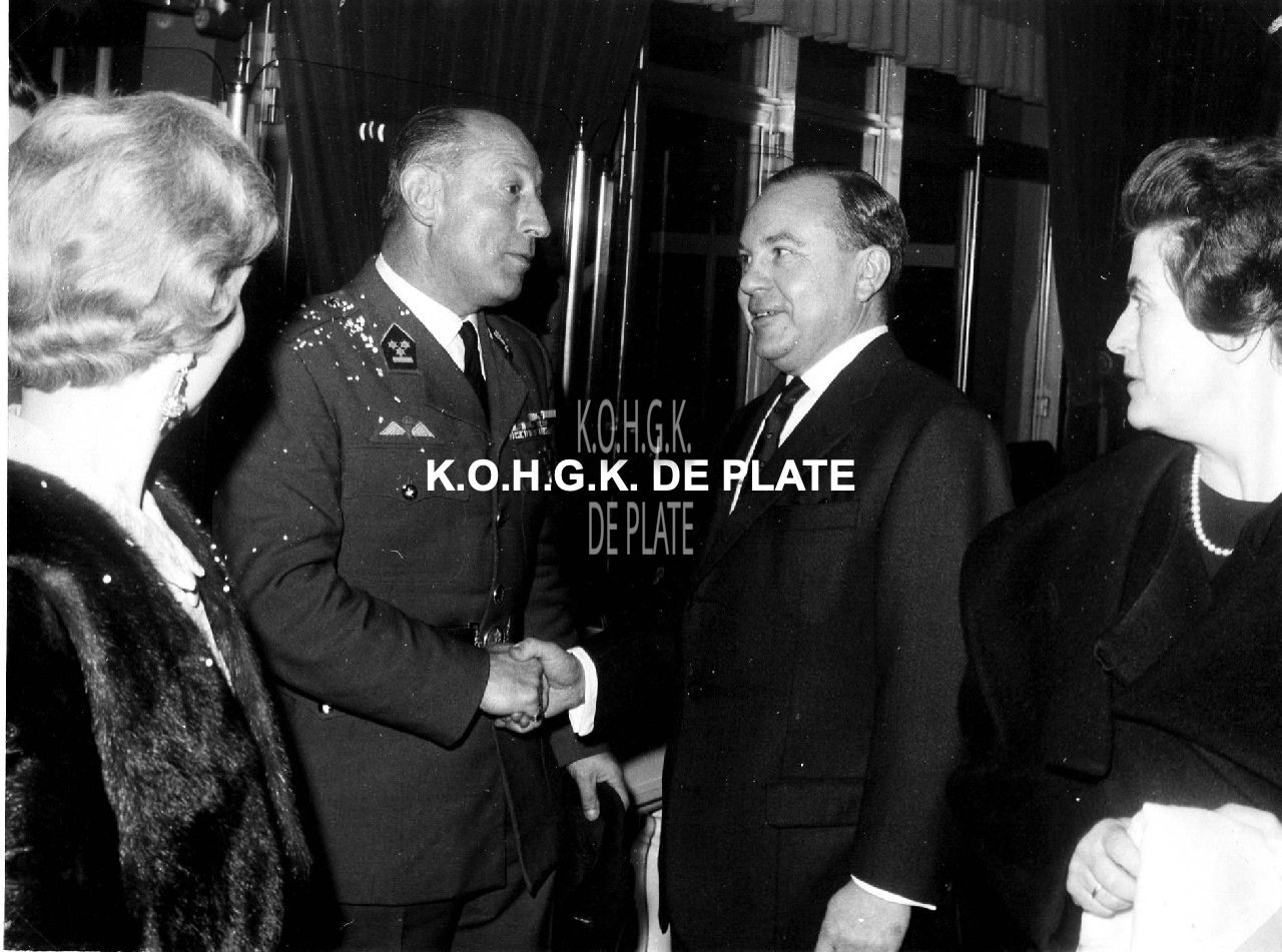 Formaat : 18 x 24 cm. - Kolonel Charles Laurent wordt bij zijn aankomst begroet door Emilien Michiels, directeur van de Kursaal en zijn echtgenote.