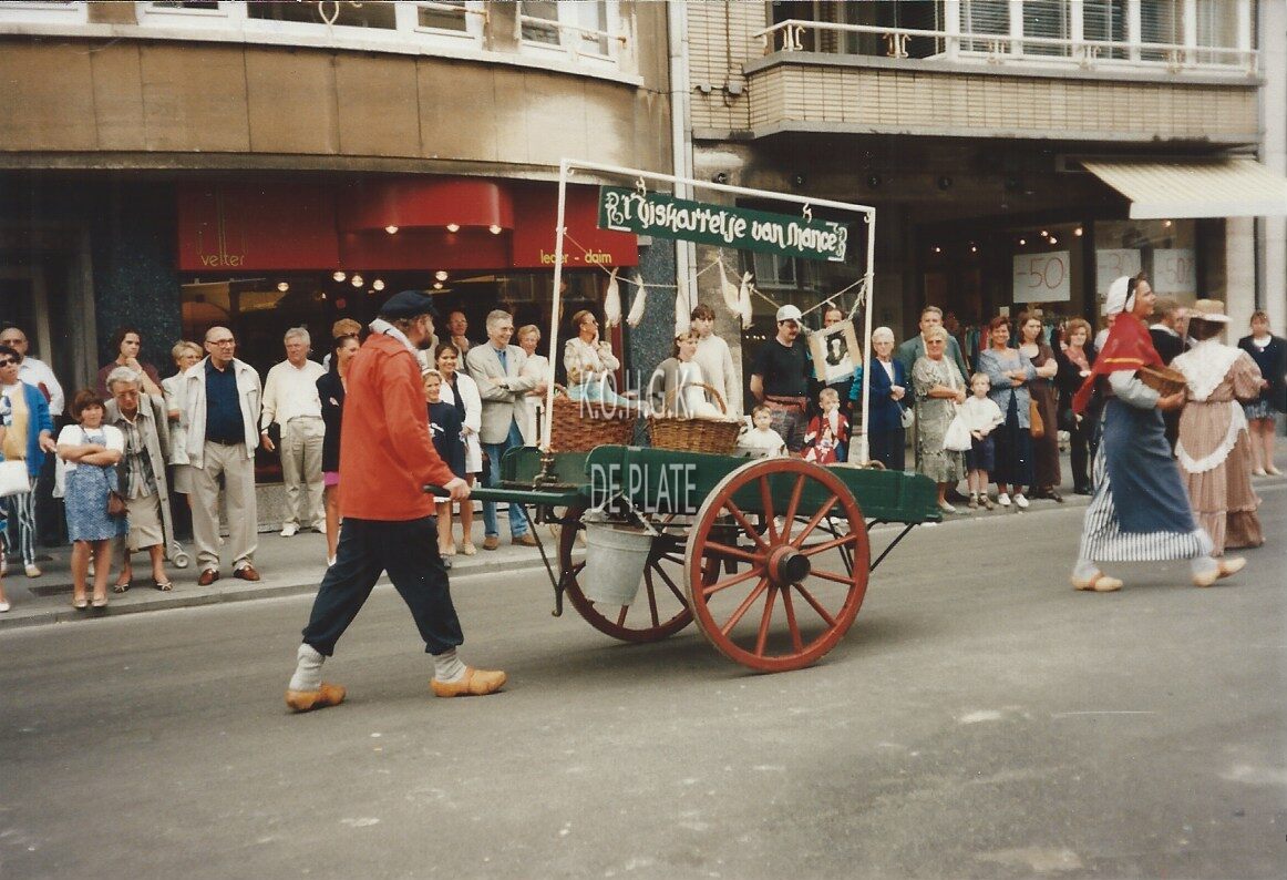 Omschrijving Formaat : 10 x 15 cm. - De stoet met "'tViskarretje van Mance" in de Leopold II-laan. - Map 006 A-113e Trefwoorden FOTO'S STOETEN VISKARREN LEOPOLD II-LAAN Plaatskenmerk MAP 006 A STOETEN-GROEPEN Inventarisnummers 2018/0160 1995 Herkomst SWEETLOVE A. mvr. Print