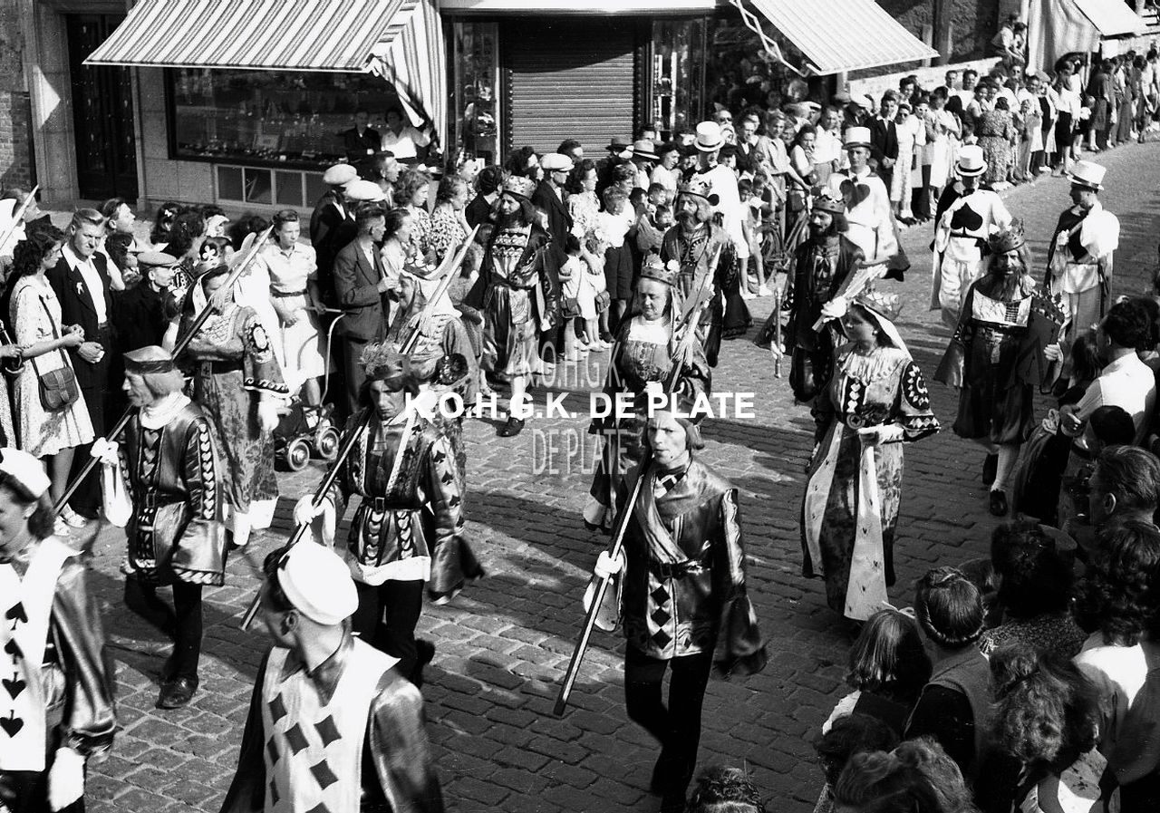 Negatief : 4 x 6,5 cm. - De groep "Het Kaartspel" in de Kapellestraat, hoek Ooststraat