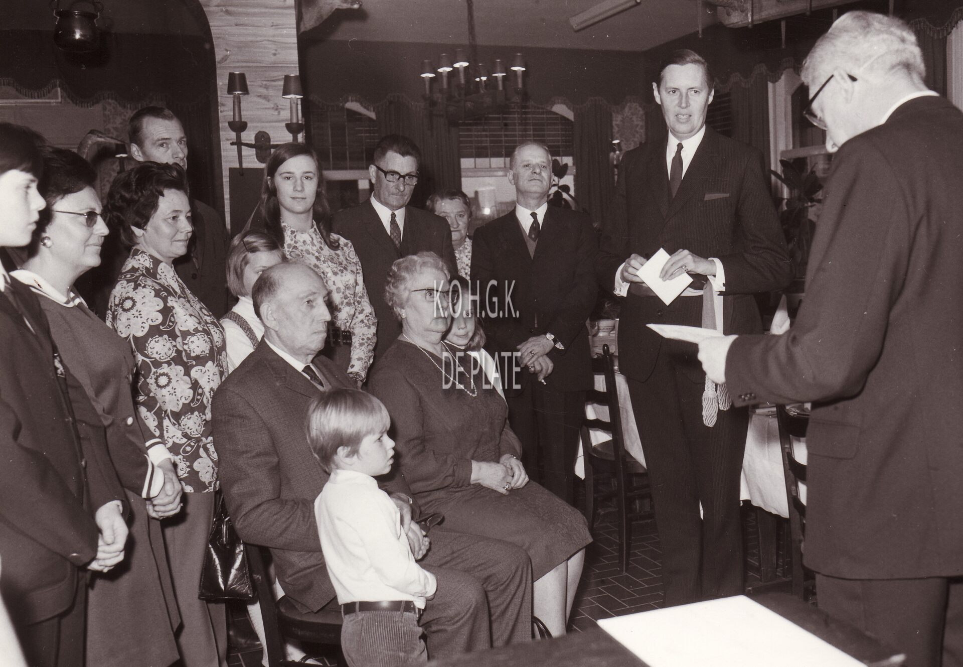 Omschrijving Formaat : 13 x 18 cm. Trefwoorden FOTO LUC GOUDEN BRUILOFTEN VAN ELSLANDER-KIMPE (GOUDEN BRUILOFT) PIERS JAN (1920-1998) (BURGEMEESTER) Plaatskenmerk ARCHIEF 202 17-19 FOTO LUC ARCHIEFDOOS 2 MAP 7-10 Inventarisnummers 1992/1297 Collectie Archief foto Luc Herkomst NOTERMAN GHISLAINE (MEVR. CHATLEN) Vervaardiger Foto Luc (Luc Chatlen) Print