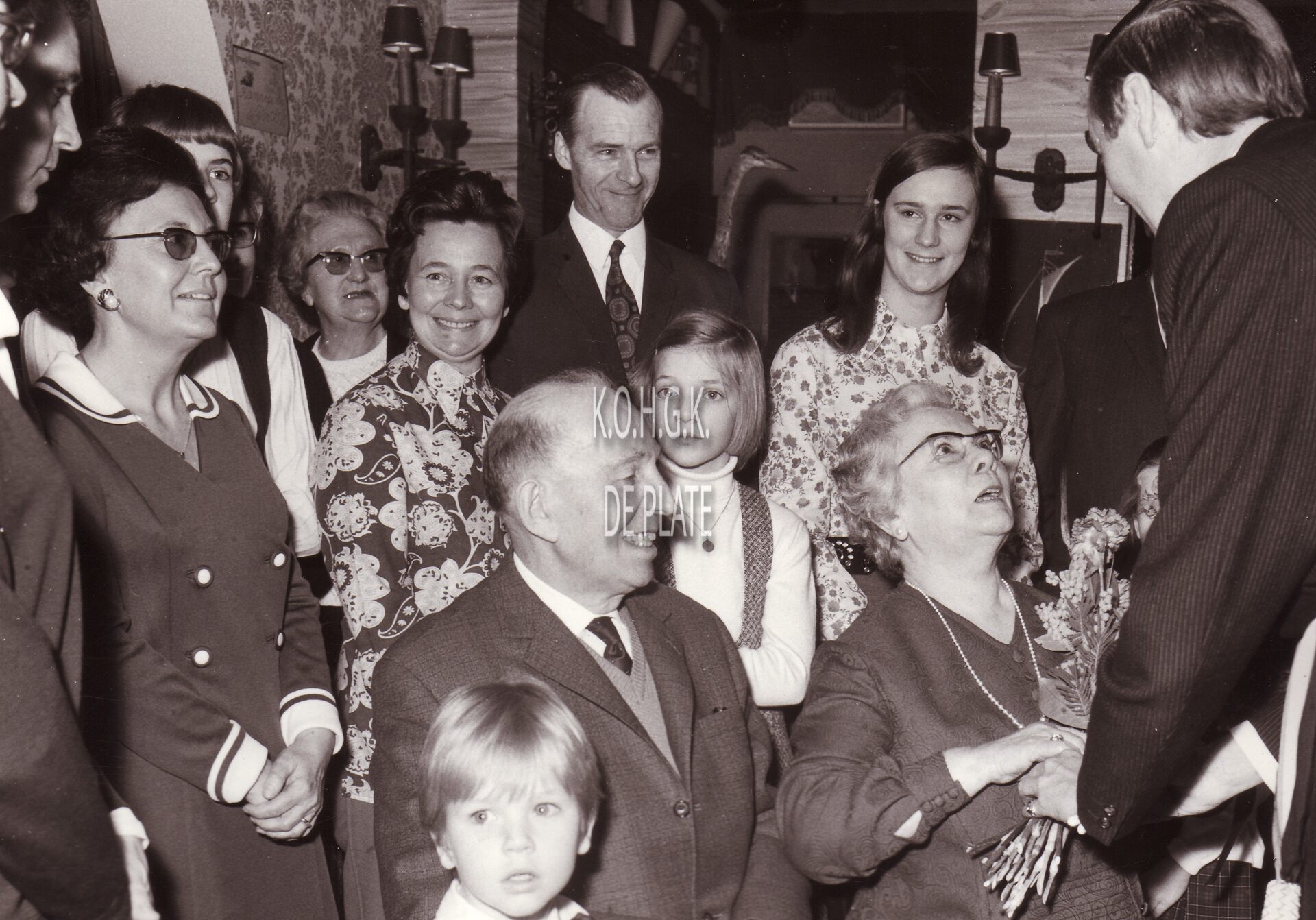 Formaat : 13 x 18 cm. - Het echtpaar wordt in de bloemetjes gezet door burgemeester Jan Piers.