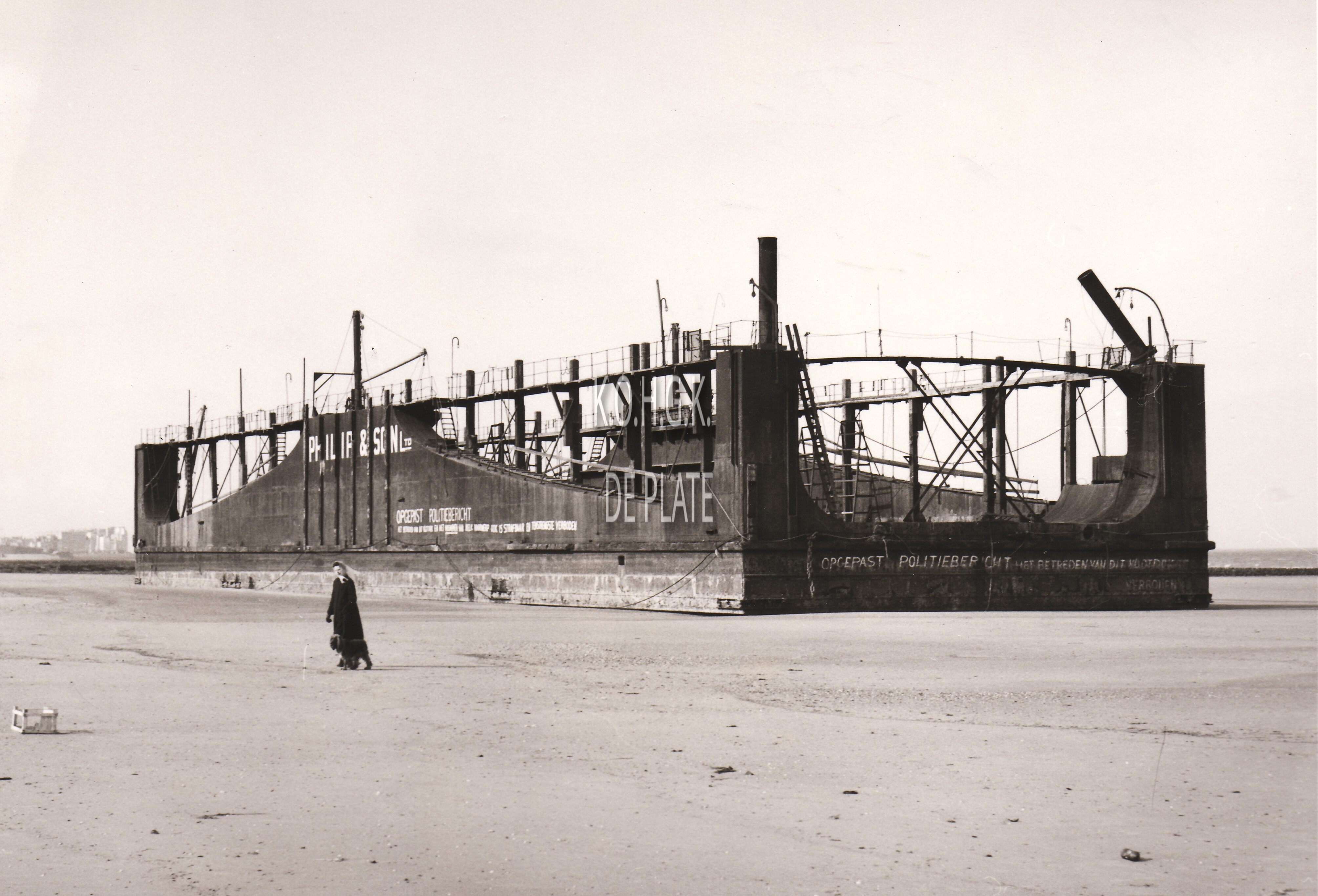 Tijdens een hevige voorjaarsstorm strandde het droogdok van de firma "Philip & Son" op het strand te Bredene. Het was op sleeptouw door een Nederlandse sleepboot. Het droogdok was niet meer vlot te krijgen en men besloot het ter plaatse af te breken.