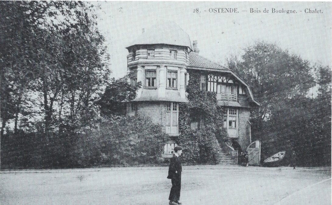 28. - Ostende. - Bois de Boulogne. - Chalet. Het gebouw was het clubhuis van de roeiclub "Société de Sport Nautique d'Ostende" en paalde aan het afleidingskanaal Oostende - Brugge. Het werd opgetrokken in 1906. Na het dempen van het afleidingskanaal in 1937 had het clubhuis er geen zin meer. Jeugdverenigingen namen er hun intrek, o.a. de "Rode Valken" in 1968. Het "Valkennest" brandde uit in september 1973 en werd later gesloopt en vervangen door boomaanplantingen.