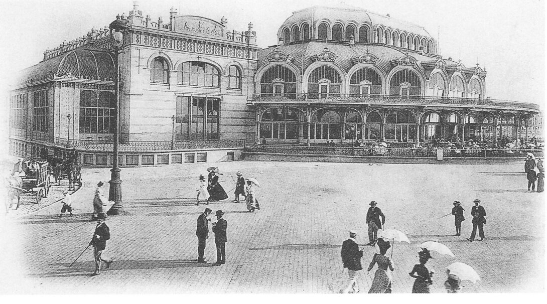 Het tweede Kursaal werd gebouwd tussen 1875 en 1878 naar de plannen van de Brusselse architect Naert. Het werd ingehuldigd op 22 juni, aanwezigheid van Z.M. Koning Keopld II. Hier opname in 1905, tijdens de verbouwing naar de plannen van architect Alban Chambon