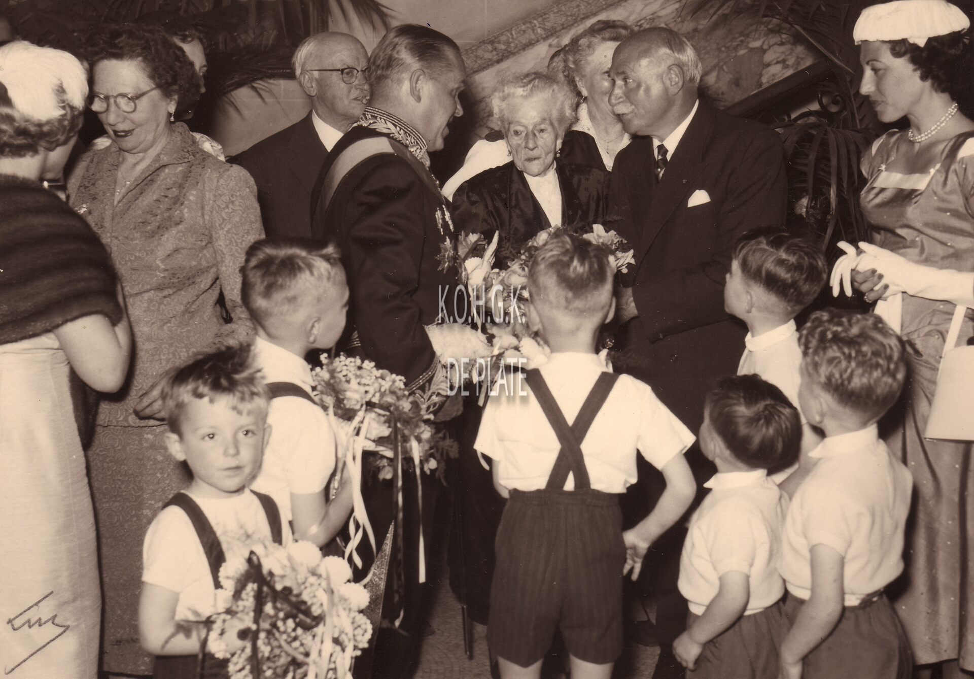 Formaat : 13 x 18 cm. - De 100 jarige Mathilde Desmet op haar viering. Links burgemeester Adolf Van Glabbeke