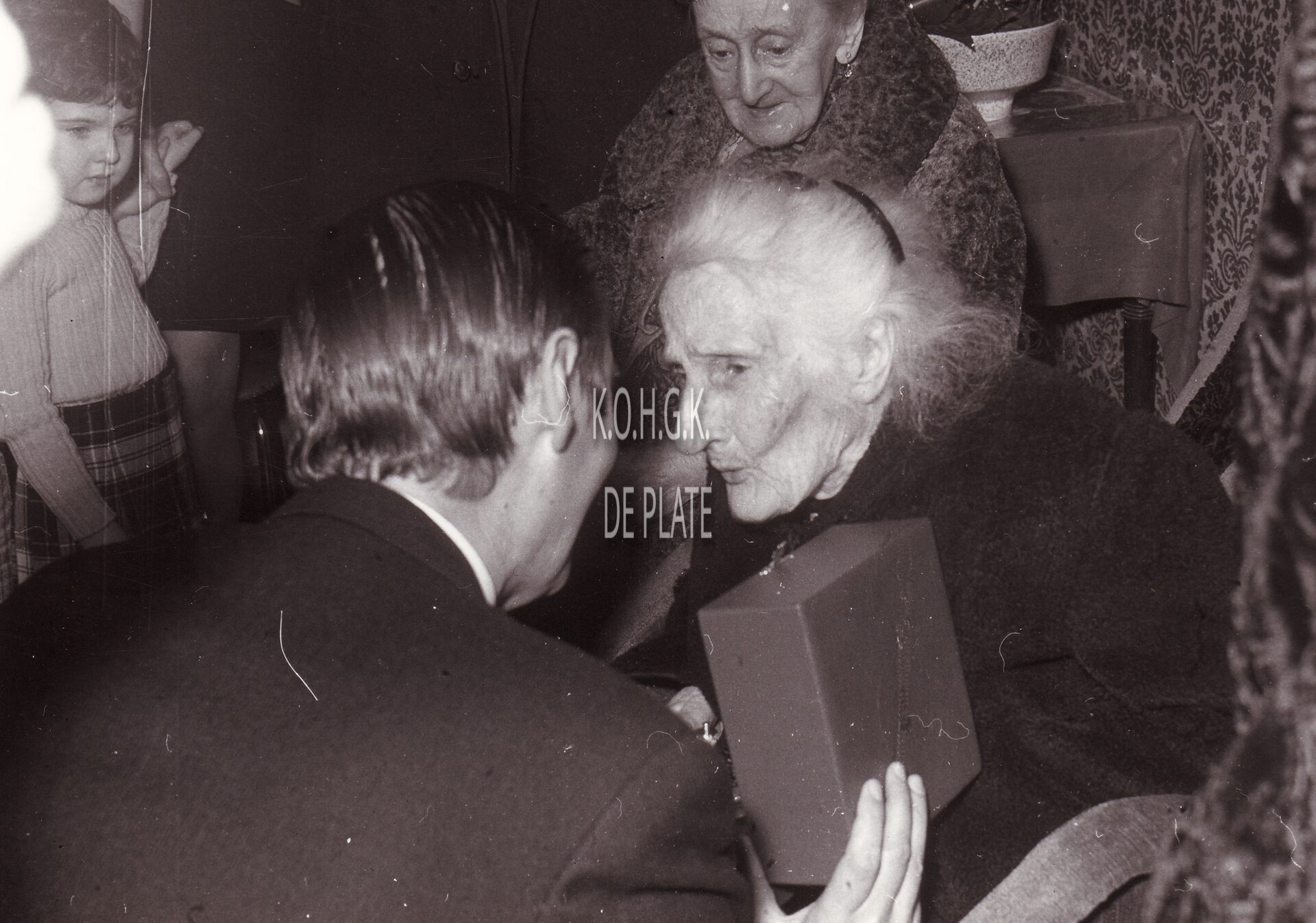 Formaat : 13 x 18 cm. - Burgemeester Jan Piers feliciteert een 100-jarige vrouw.