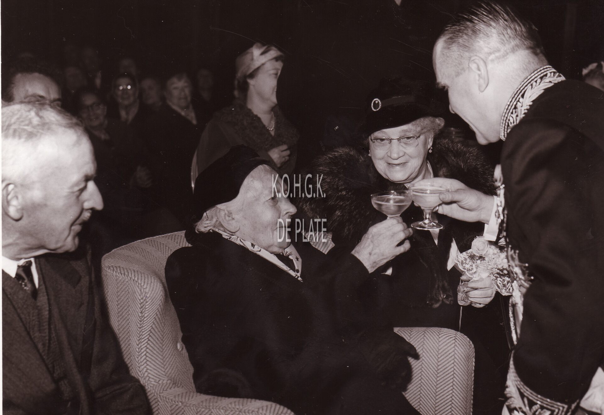 Formaat : 13 x 18 cm. - De honderdjarige Sylvie Fockedey klinkt met burgemeester Adolf Van Glabbeke tijdens haar ontvangst op het stadhuis.