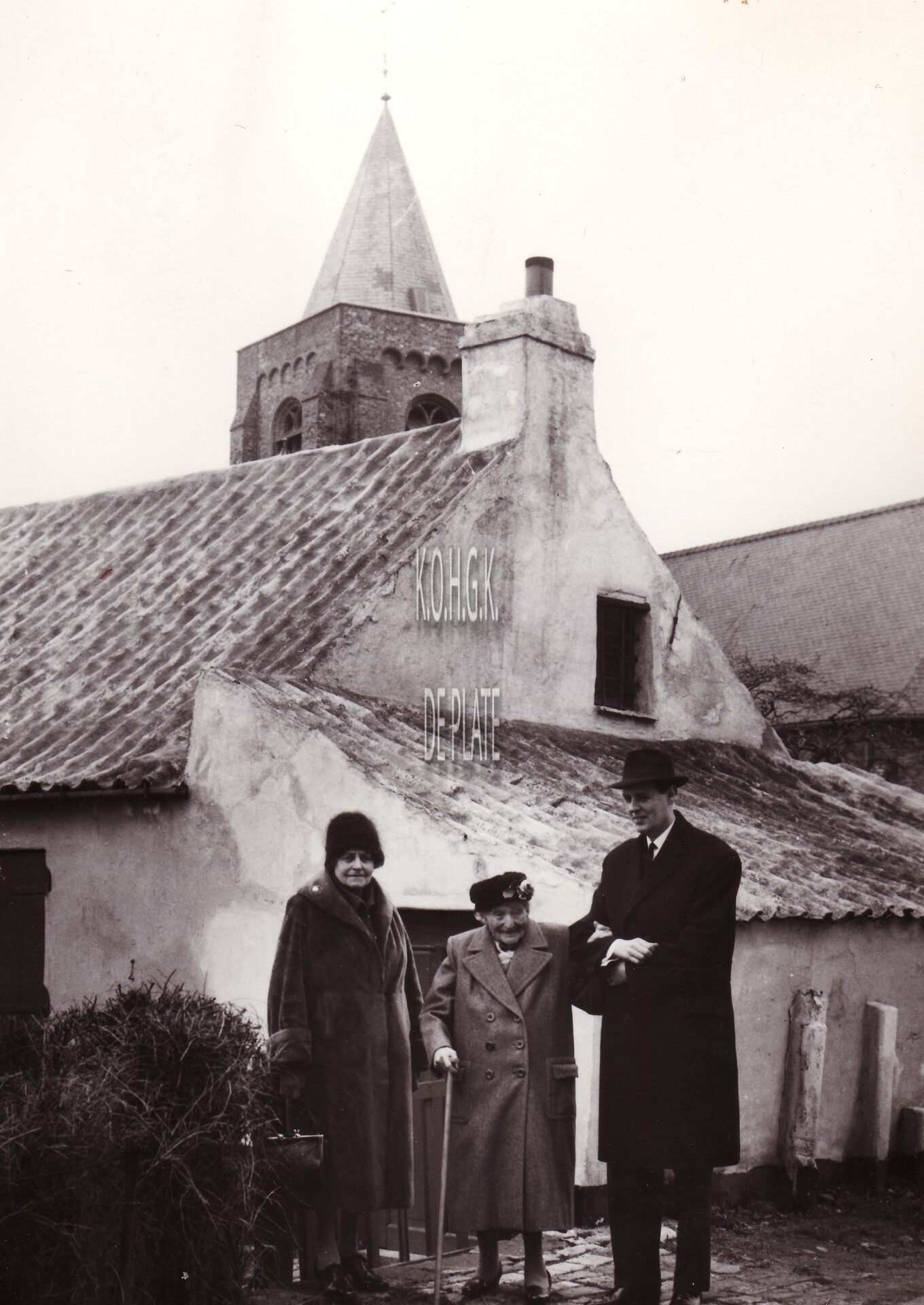 Formaat : 18 x 13 cm/ - Een honderdjarige wordt aan haar vissershuisje afgehaald door burgemeester Jan Piers in de Dorpstraat. (Mariakerke)