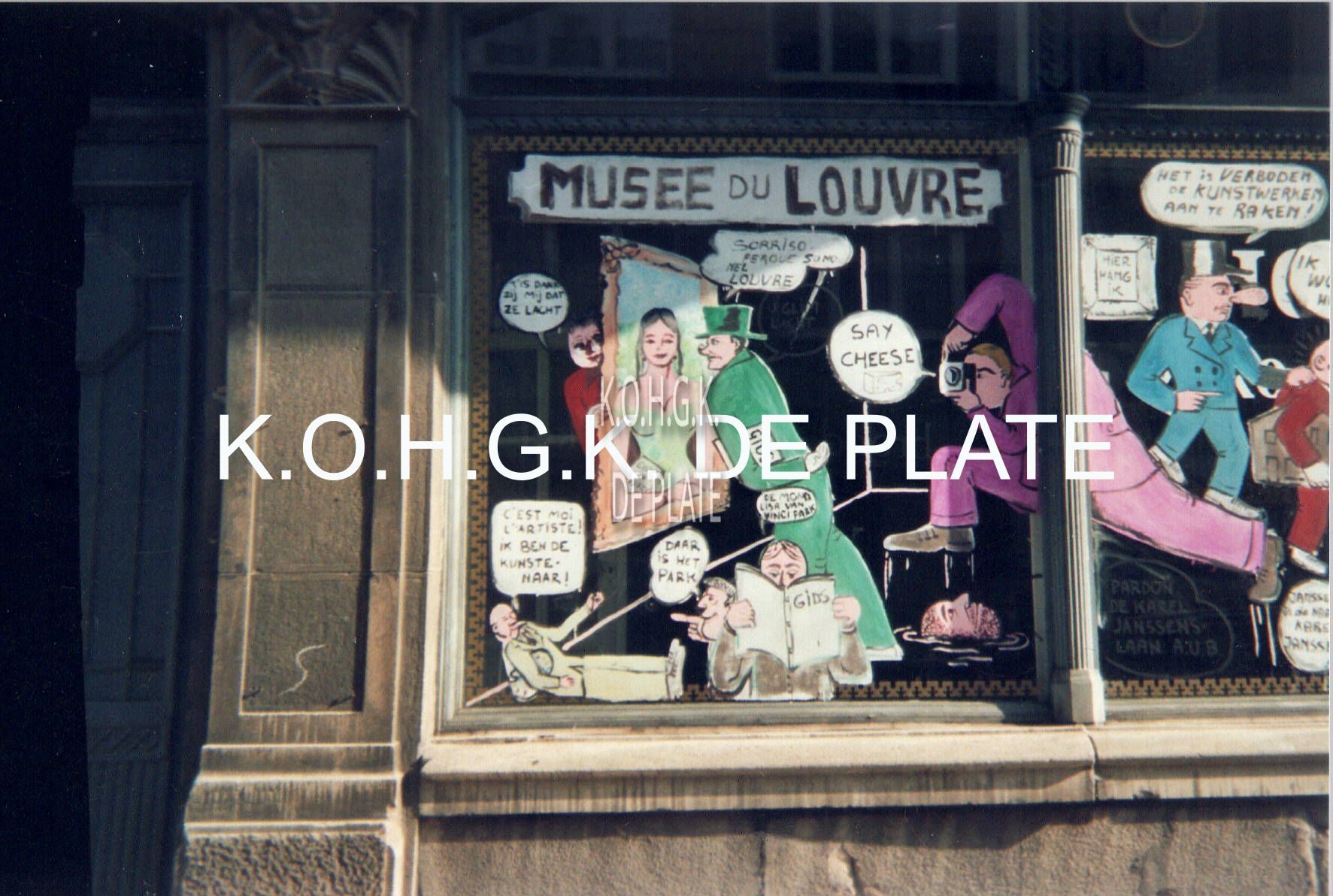 Formaat : 15 x 10 cm. -Tekeningen van Herr Seele op de ramen van Hotel du Louvre uit protest tegen de afbraak.