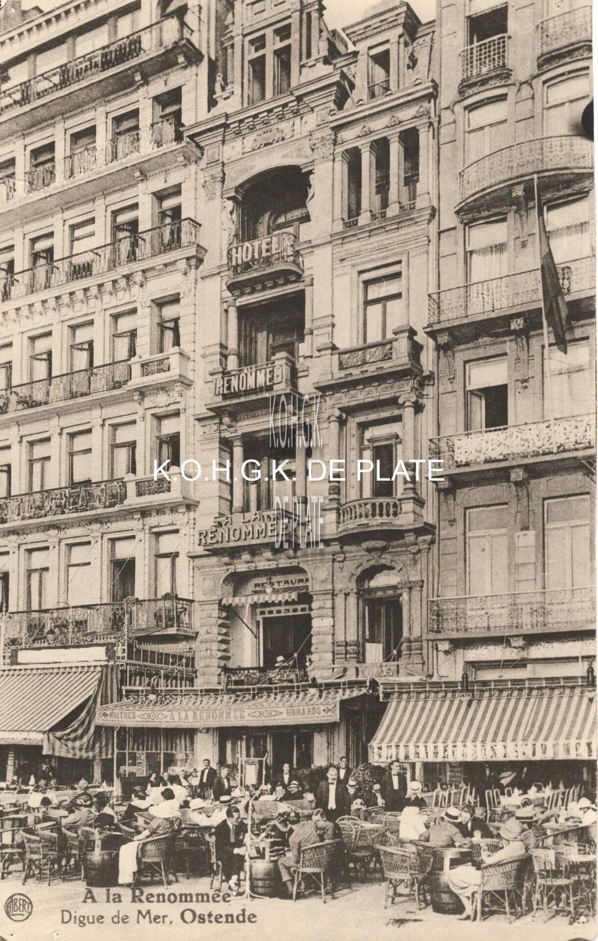Omschrijving Afdruk van postkaart. - Formaat : 22,5 x 14 cm. - A la Renommée - Digue de Mer, Ostende Trefwoorden FOTO'S A LA RENOMMEE (HOTEL) A LA RENOMMEE (RESTAURANT) HOTELS (OUDE) RESTAURANTS ZEEDIJK HORECA ; TERRASSEN Plaatskenmerk ARCHIEF 202 01-07 ARCHIEFDOOS HORECA Inventarisnummers 2022/2163 Collectie Fotoarchief De Plate Herkomst FRIEDERICHS SABINE Vervaardiger Deweer (Brugge) Print