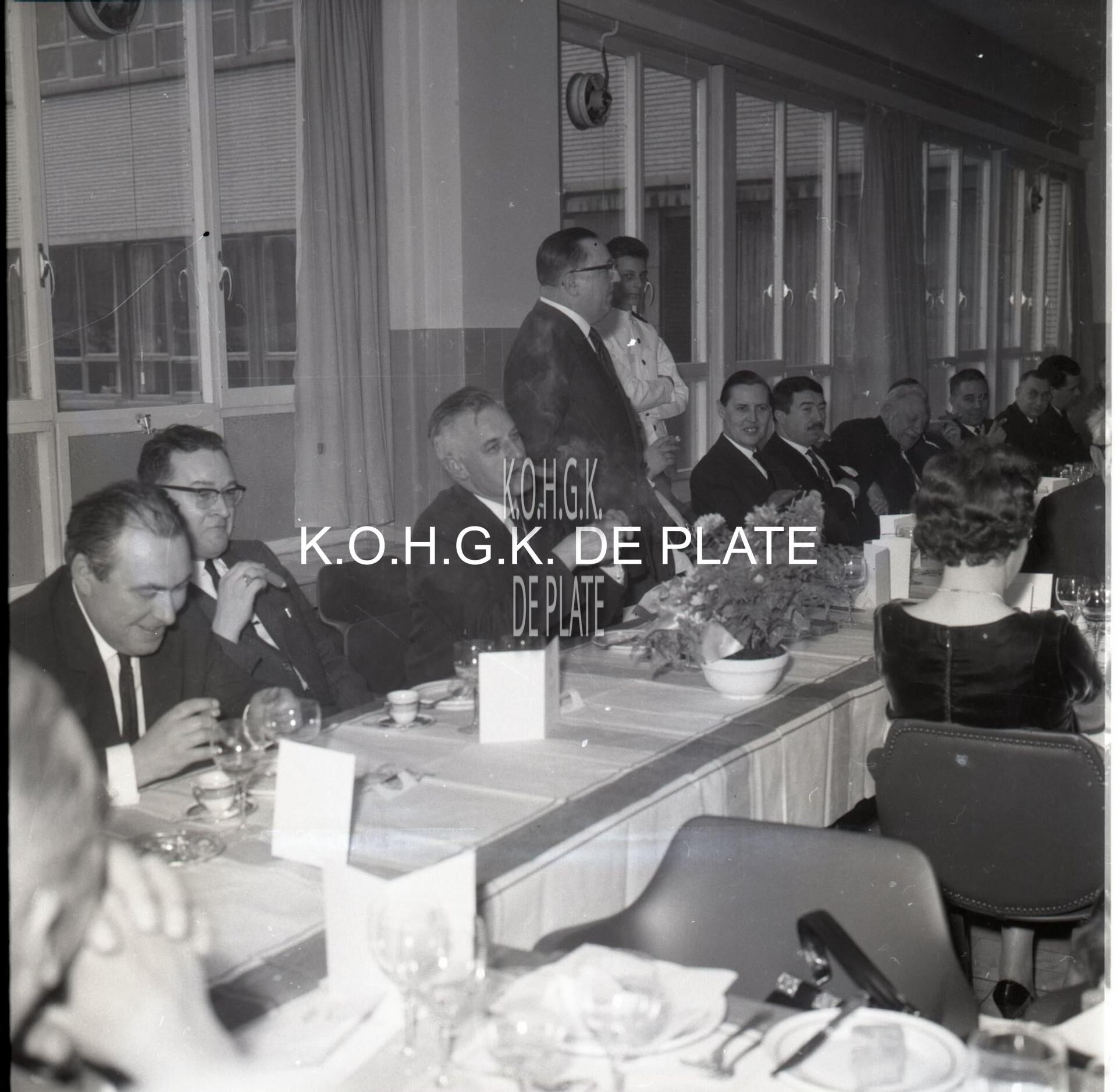 Negatief : 6 x 6 cm. - Schepen van Openbaar Onderwijs, John Lauwereins houdt zijn toespraak. Een sigaar roken hoorde er ook bij.