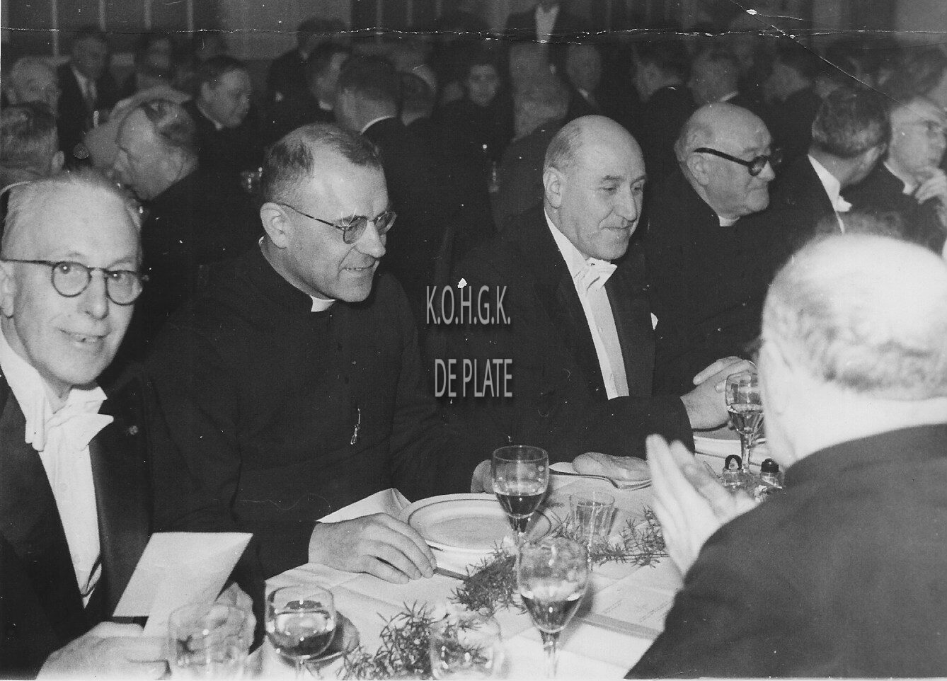 Formaat : 13 x 18 cm. - Banket naar aanleiding van de inhuldiging van deken René Butaye. Derde van links, Robert Elleboudt, uitgever van de Zeewacht. - Map 006 A-94b