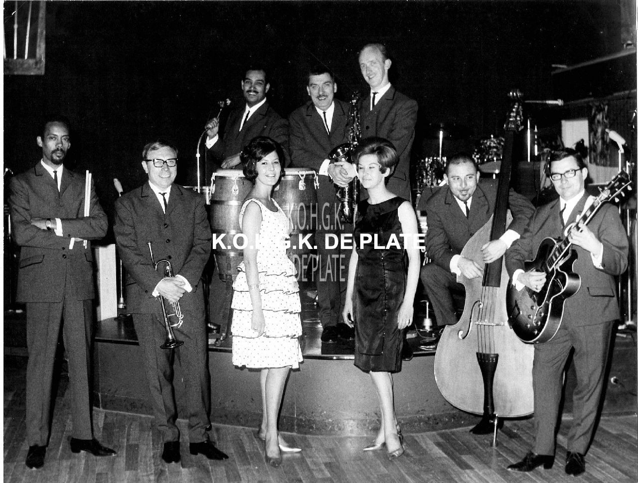 De nightclub "La Champagne". Met : de zangeressen Hilda Anderson en Nicole Somers. Rechts, Freddy Sunder (gitaar), Roger Vanhaverbeke (contrabas) en links, Al Jones (drums). Achteraan, rechts, Johnny Dover (tenorsax) (!) en links, Alberto Cortez (zang) (!).