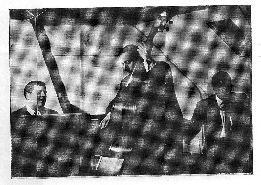 Jack Van Poll (p), Roger Vanhaverbeke (cb) en Al Jones (dm) tijdens een optreden in de Hnita Jazz Club te Heist-op-den-Berg