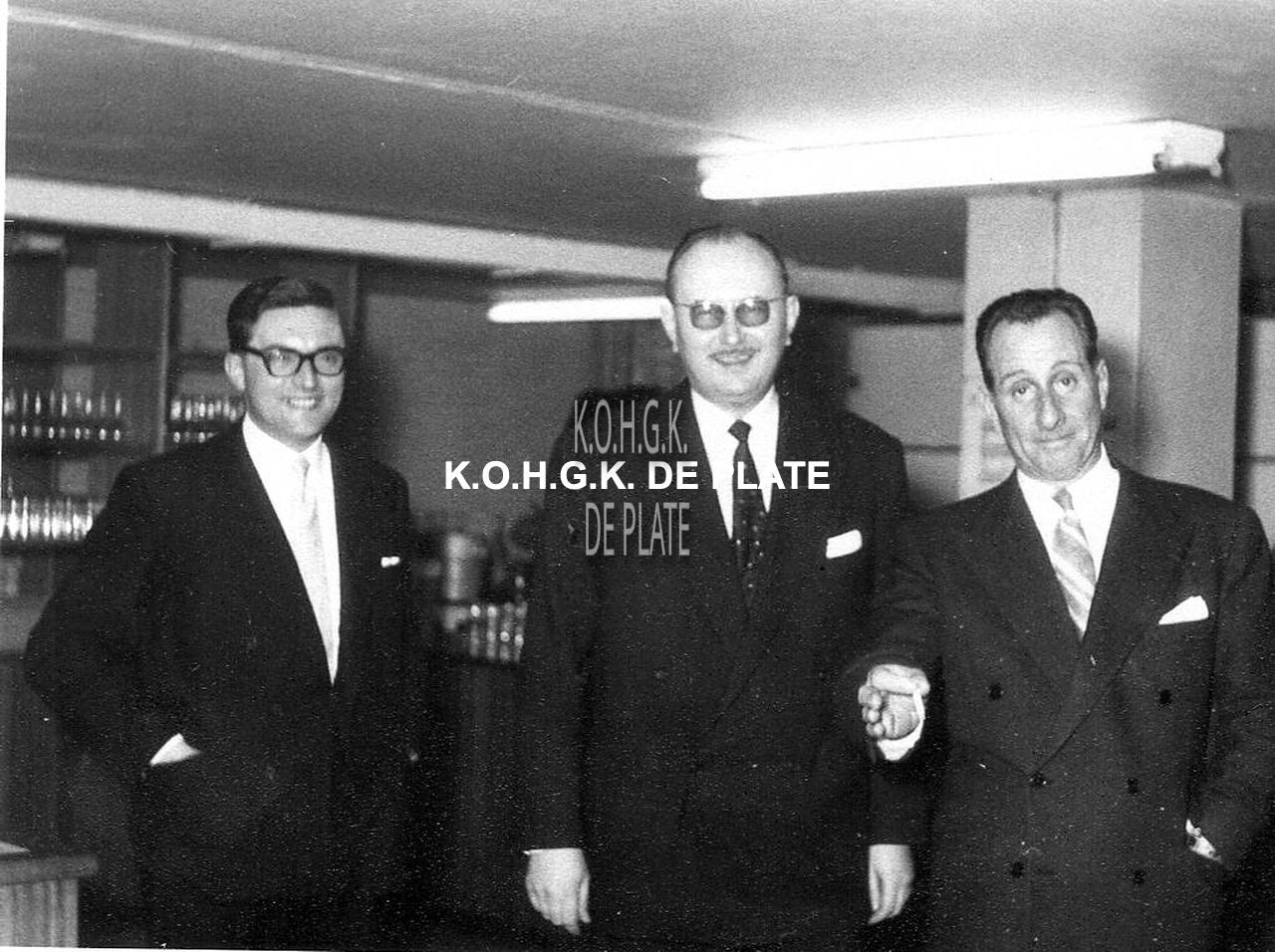Formaat : 10,5 x 14,5 cm. - Jacques Meyran (rechts) in gezelschap met naast hem, Roger De Ramée, directeur van het Kursaal.