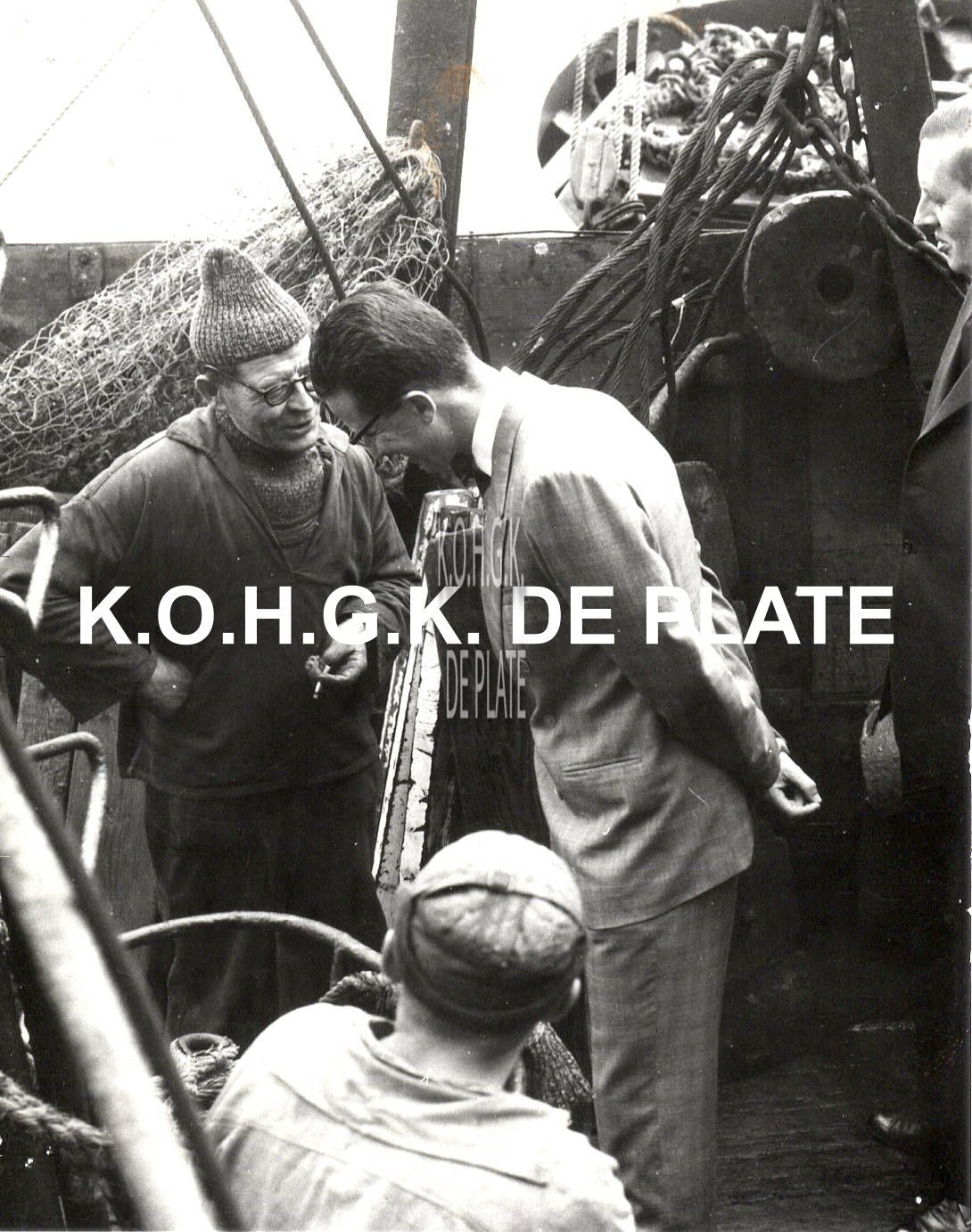 Formaat : 12 x 9,5 cm. - Hier aan boord van de Z.444 "L'Avenir" van reder Leon Desmidt. Rechts nog nipt herkenbaar burgemeester Jan Piers.