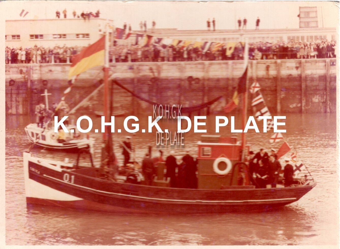 Foto : Koning Boudewijn en Koningin Fabiola worden geestdriftig begroet door de Oostendse bevolking bij hun bezoek aan Oostende voor de ontvangst van hun huwelijksgeschenk de O.1 "Fabiola". 03/04/1961