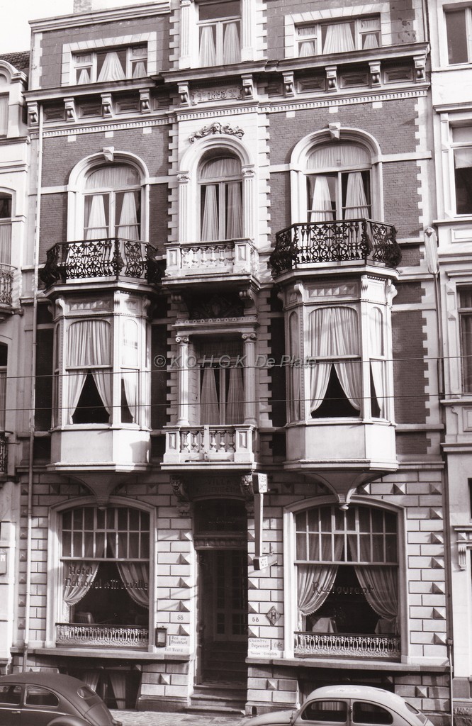 Hotel "National et Merville" Koningsstraat, 58. Het hotel had 25 kamers, lopend water, centrale verwarming, 2 badkamers en was het ganse jaar open.