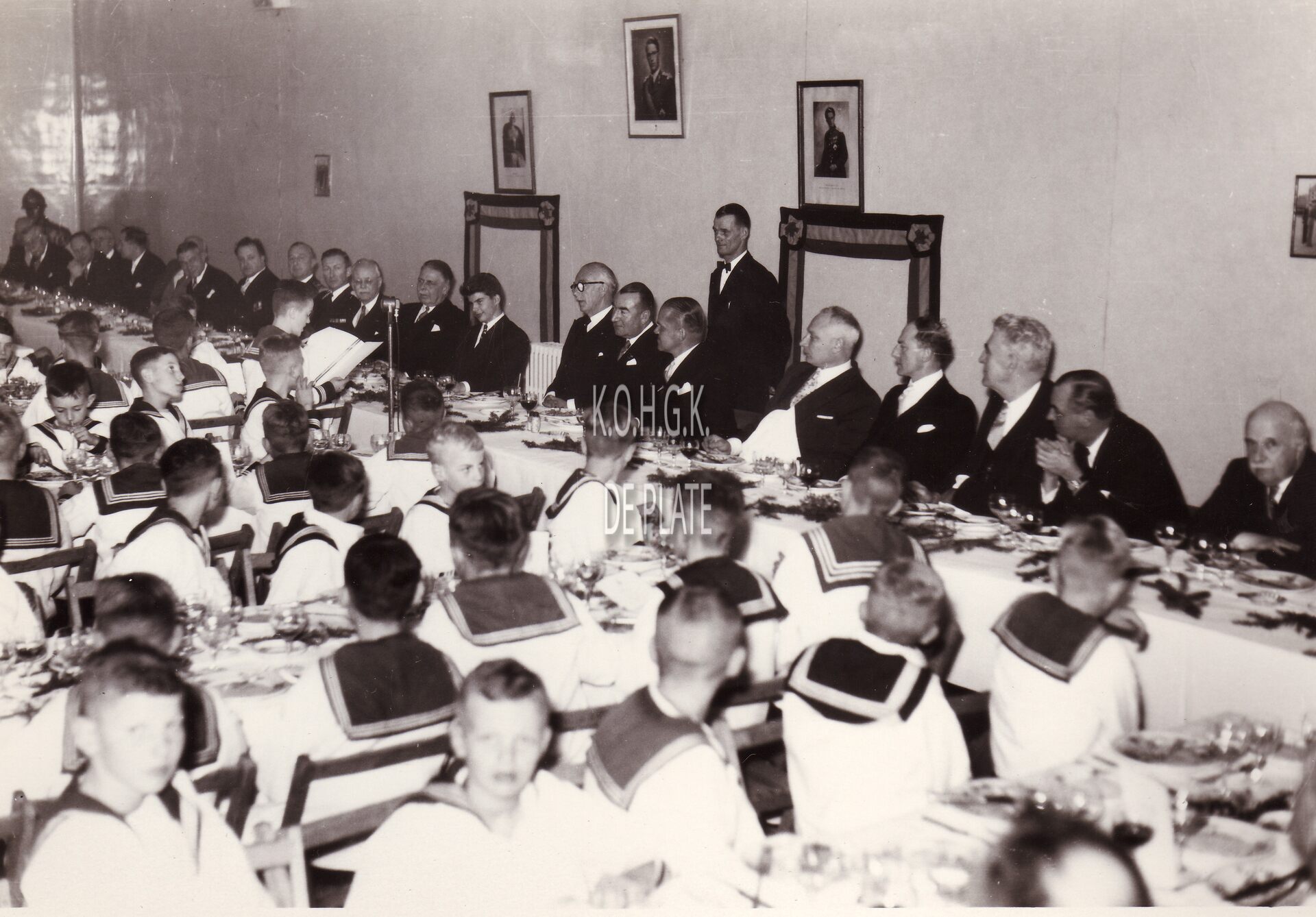 Formaat : 13 x 18 cm. - Ontvangst van Prins Alexander naar aanleiding van vijftig jaar Ibis op 30 oktober 1956. Rechts naast de prins, de voorzitter Ernest-John Solvay, Willy Weemaes (secretaris van Leopold III), burgemeester Adolphe Van Glabbeke.