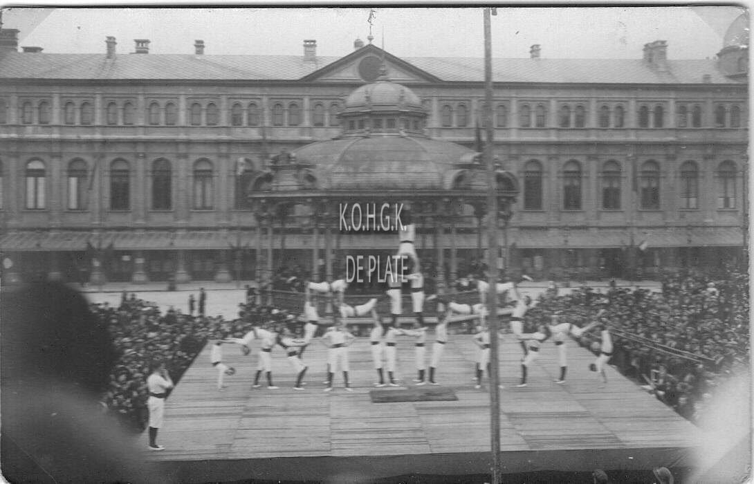 Formaat : 8,5 x 13,5 cm. - Met muziekkapel op de kiosk. Opde achtergond, het Stadhuis. - Map foto's 07c