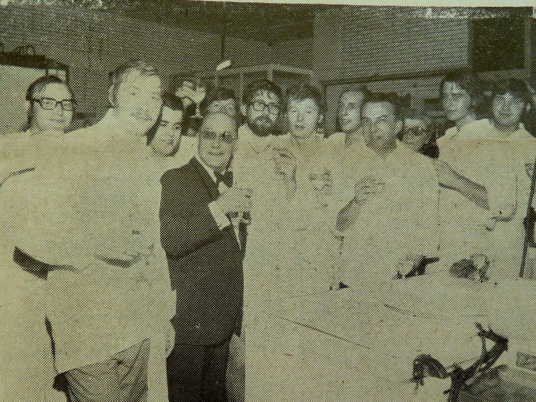 Foto : Aanleiding van een glaasje champagne : het eerste gastronomische week-end jaar 1974-1975 in het Casino-Kursaal. Aanwezig o.a. : Pierre Gleize, François Ohler en Marcel Geerts