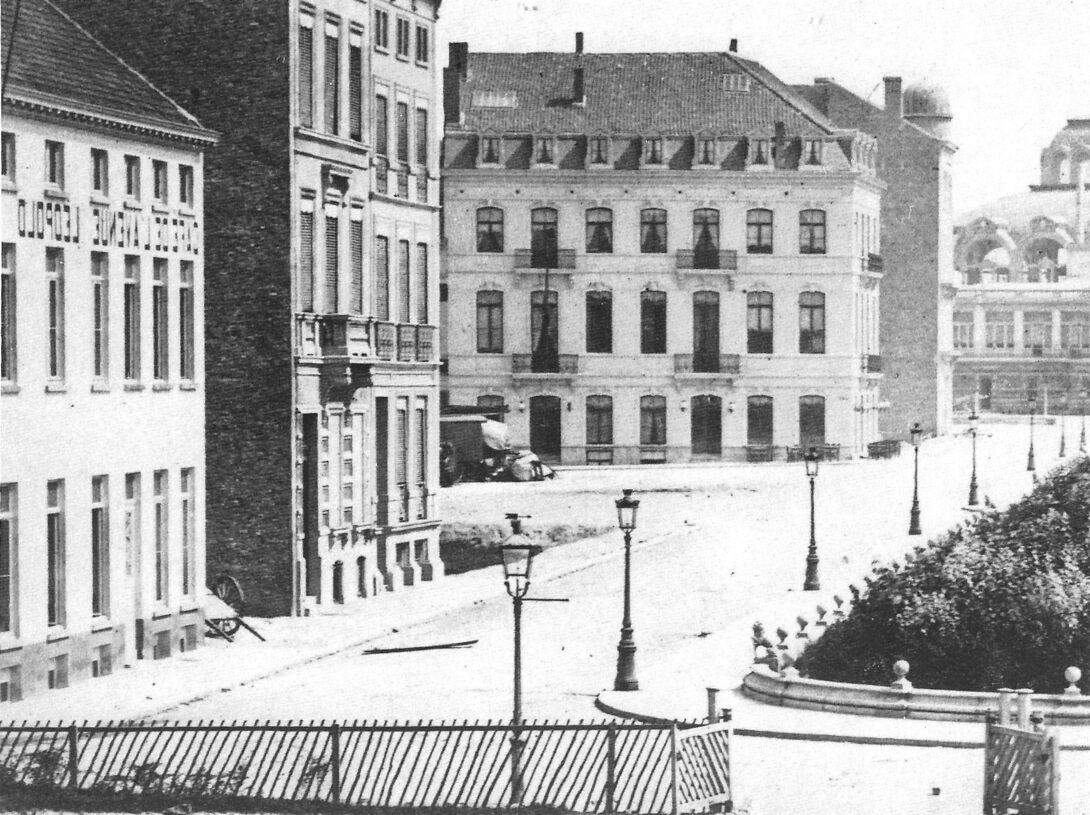 Foto in spiegelbeeld. Zicht van de Leopoldlaan, vanaf de huidige Karel Janssenslaan richting het tweede Kursaal.