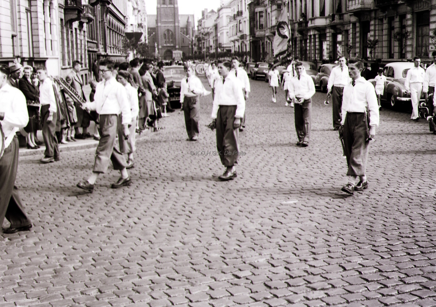 Omschrijving Een groep jonge muzikanten uit de Maria processie op het Leopold I plein.De "golfbroek" werd toen nog gedragen ! Plaatskenmerk SECR BOX FOTO LUC7/Doos1 ko7 19 Inventarisnummers 2014/6692 1954 Collectie Archief foto Luc Herkomst NOTERMAN GHISLAINE (MEVR. CHATLEN) Vervaardiger Foto Luc (Luc Chatlen) Print