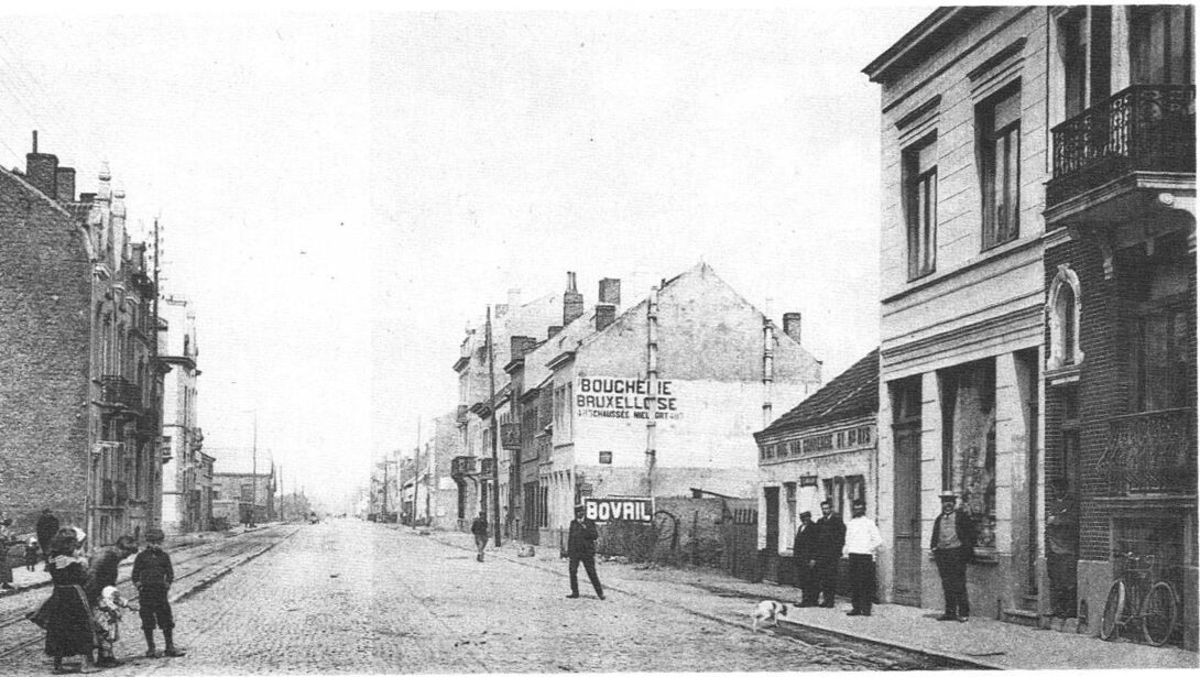 Gedeelte van de Nieuwpoortsesteenweg tussen de Steensedijk en de Elisabethlaan. Links op de achtergrond de oude Electriek Fabriek die was gelegen op de plaats waar in 1925 de Vercamerschool werd gebouwd. Het klein huisje rechts op de foto was het café Het Hof van Commerce.