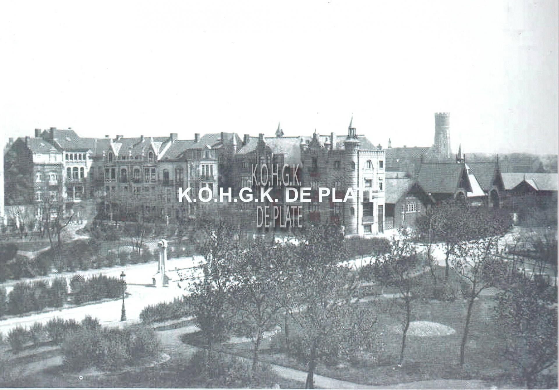 Formaat : 13 x 19 cm. - Rechts de Koninklijke Stallingen met in de achtergrond de oude watertoren. Links het Prinses Stefanieplein en vooraan het Prinses Clementinaplein