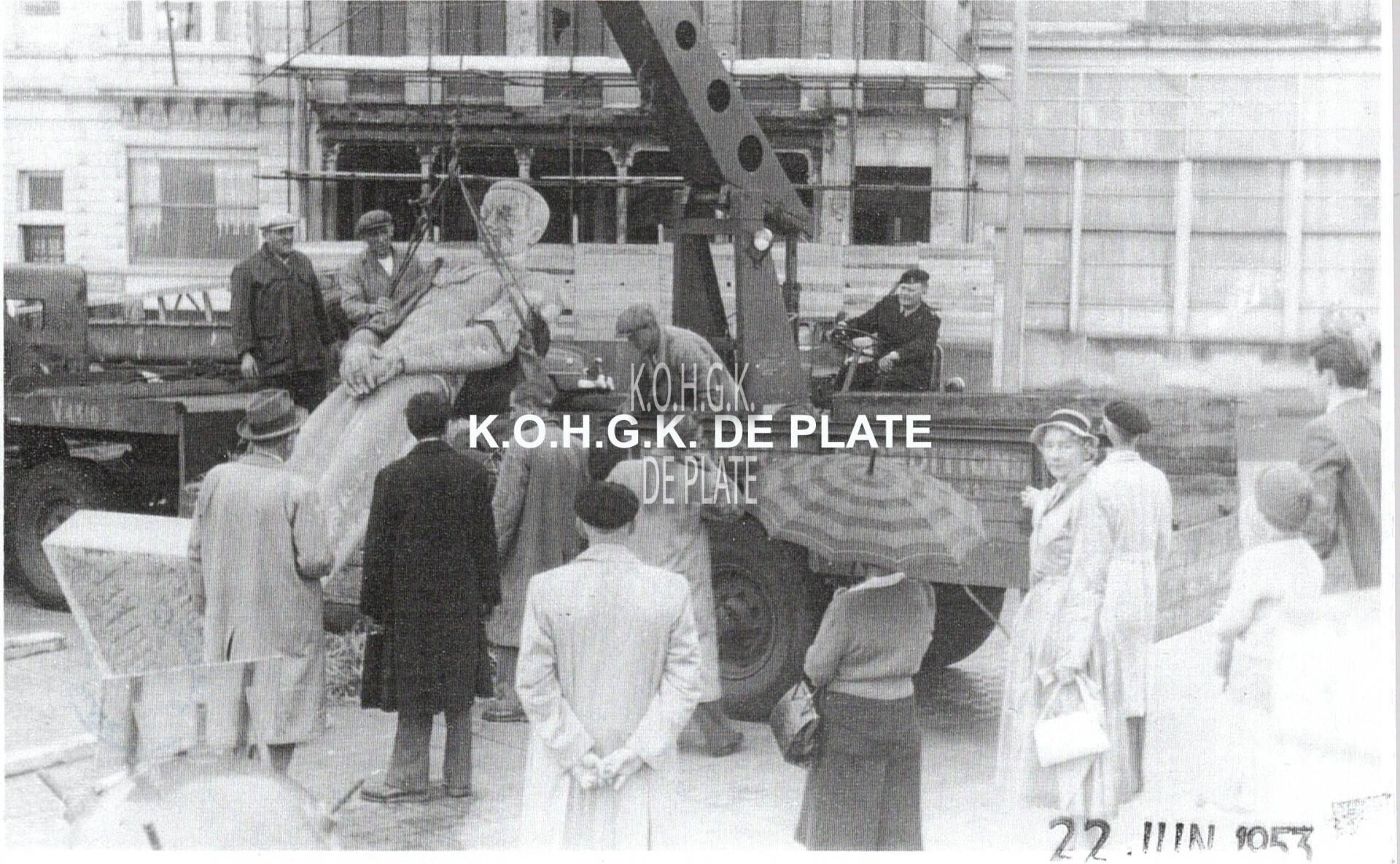 Afdruk. - Formaat : 14 x 19 cm. - Eén van de beelden van het Monument voor de Zeelieden dat in de loop van 1953 opgetrokken werd.